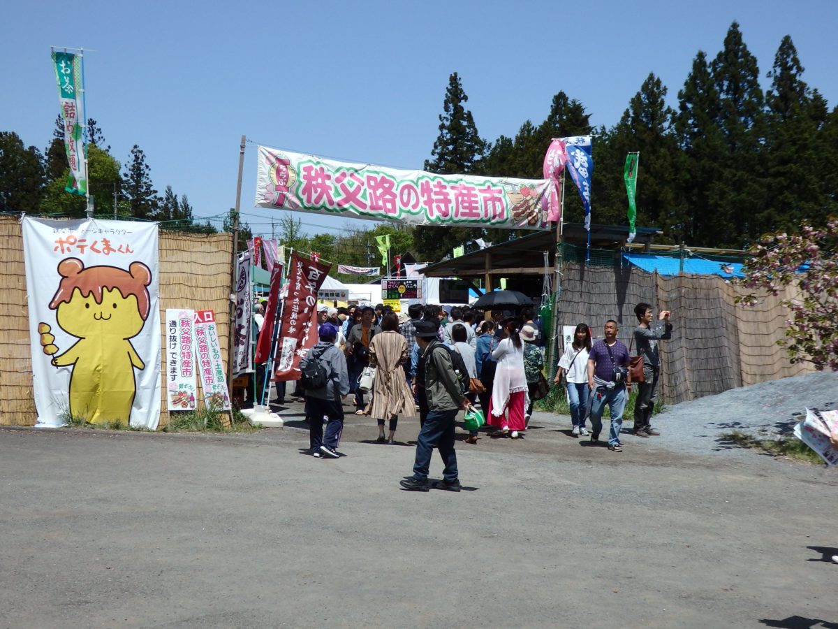 また、まつりの開催期間中には、芝桜の丘の上の中央広場では秩父路の特産市が行われます。会場には秩父の特産品が勢揃いします。