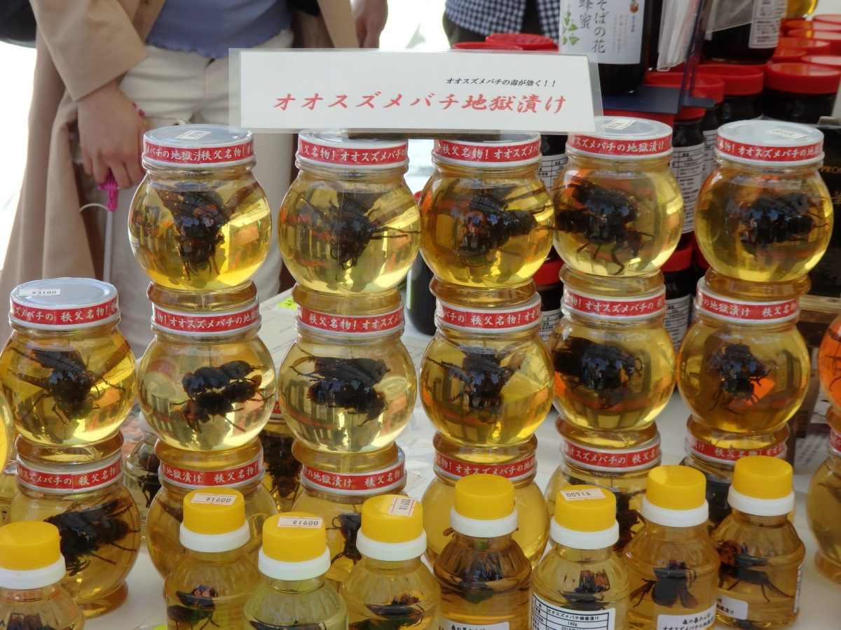 秩父路の特産市で販売される「オオスズメバチの地獄漬け」