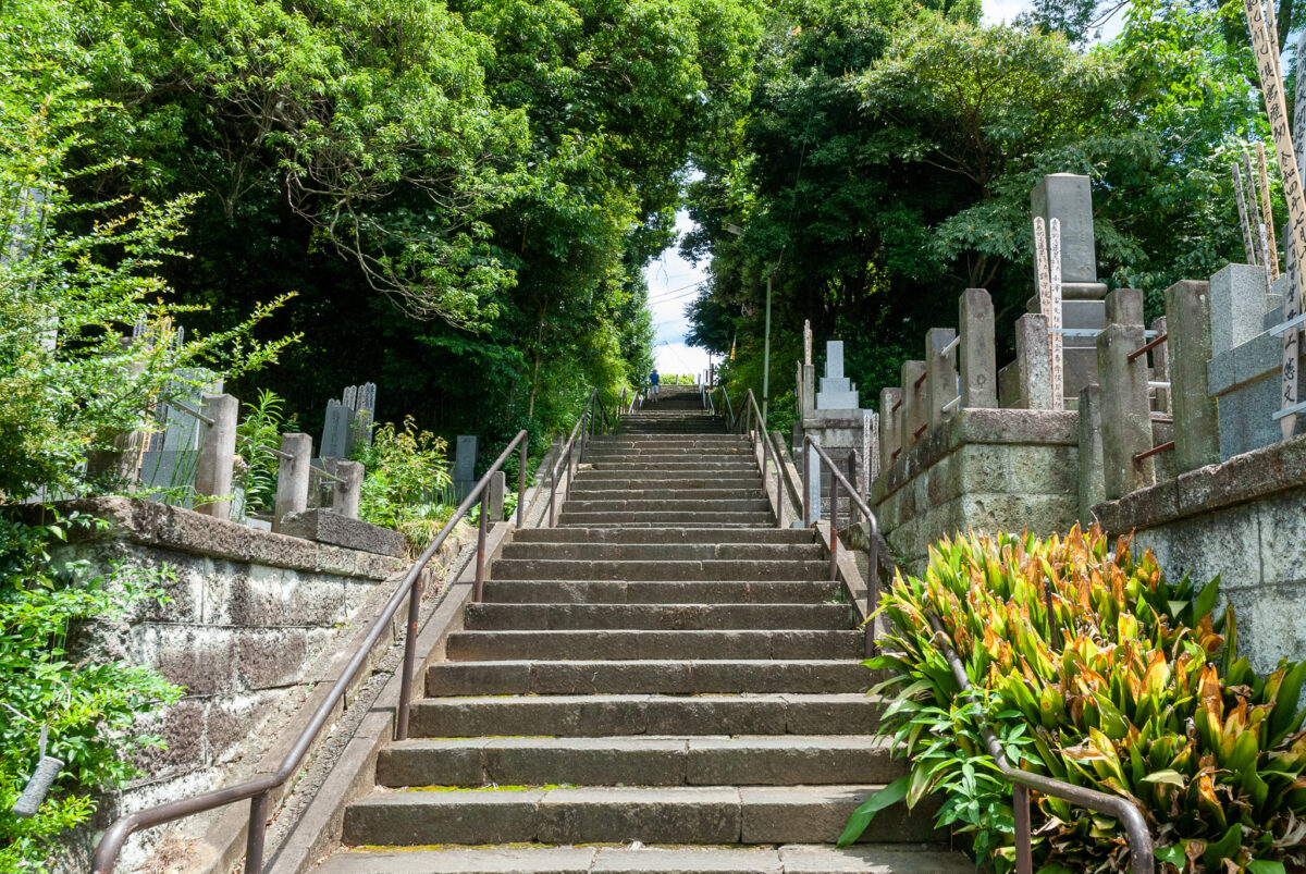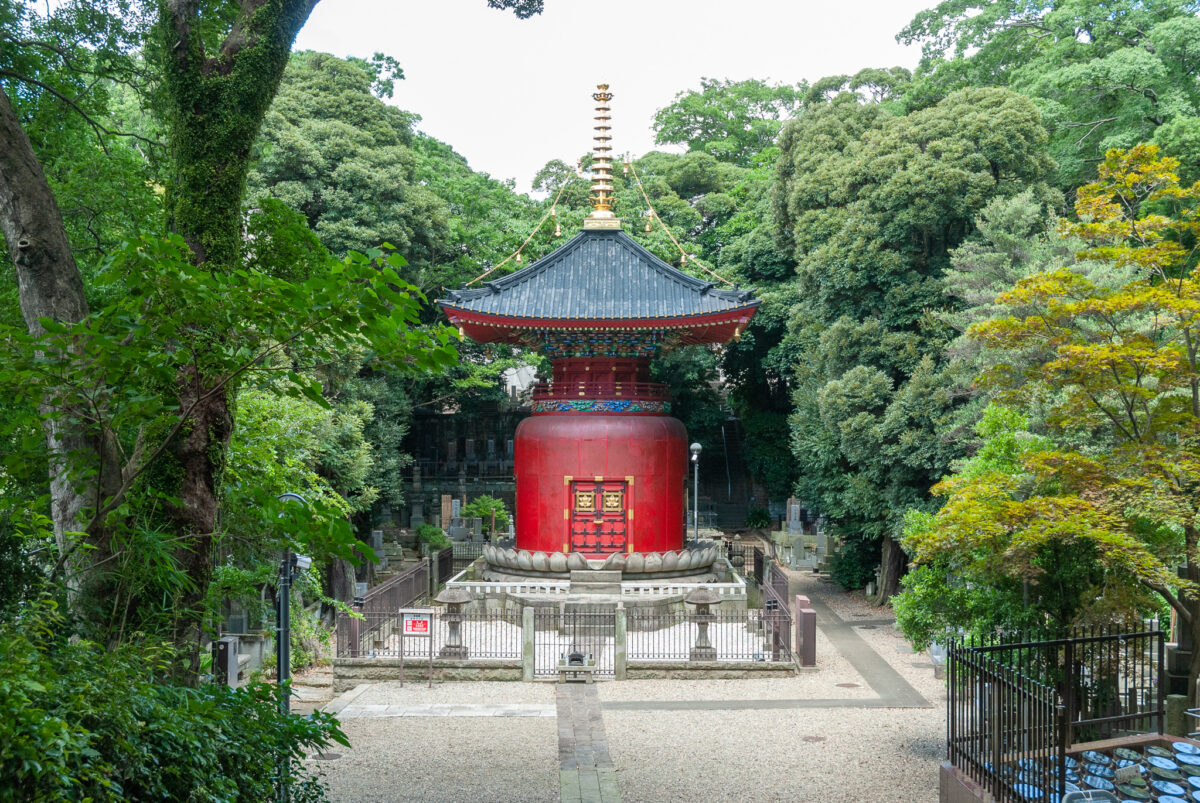 坂の中腹には多宝塔(日蓮聖人御入滅の折の御荼毘所)を見ることができます。この地は、池上本門寺にとって重要な浄域の一つとされています。