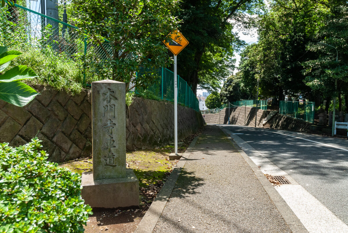 幕末に編纂された『新編武蔵風土記稿』でもその名を見ることができる車坂。現在は名前通り、参詣者が使用する車用道路となっています。
