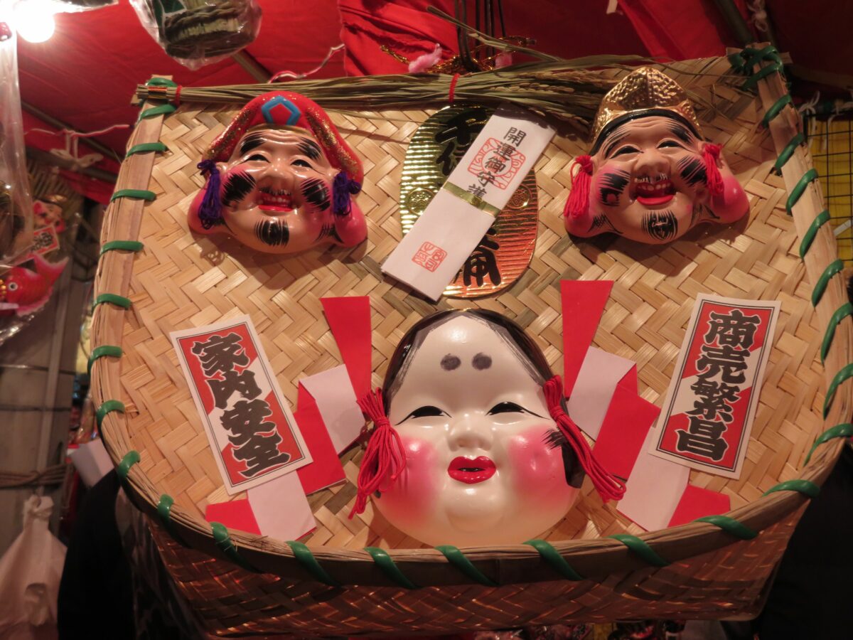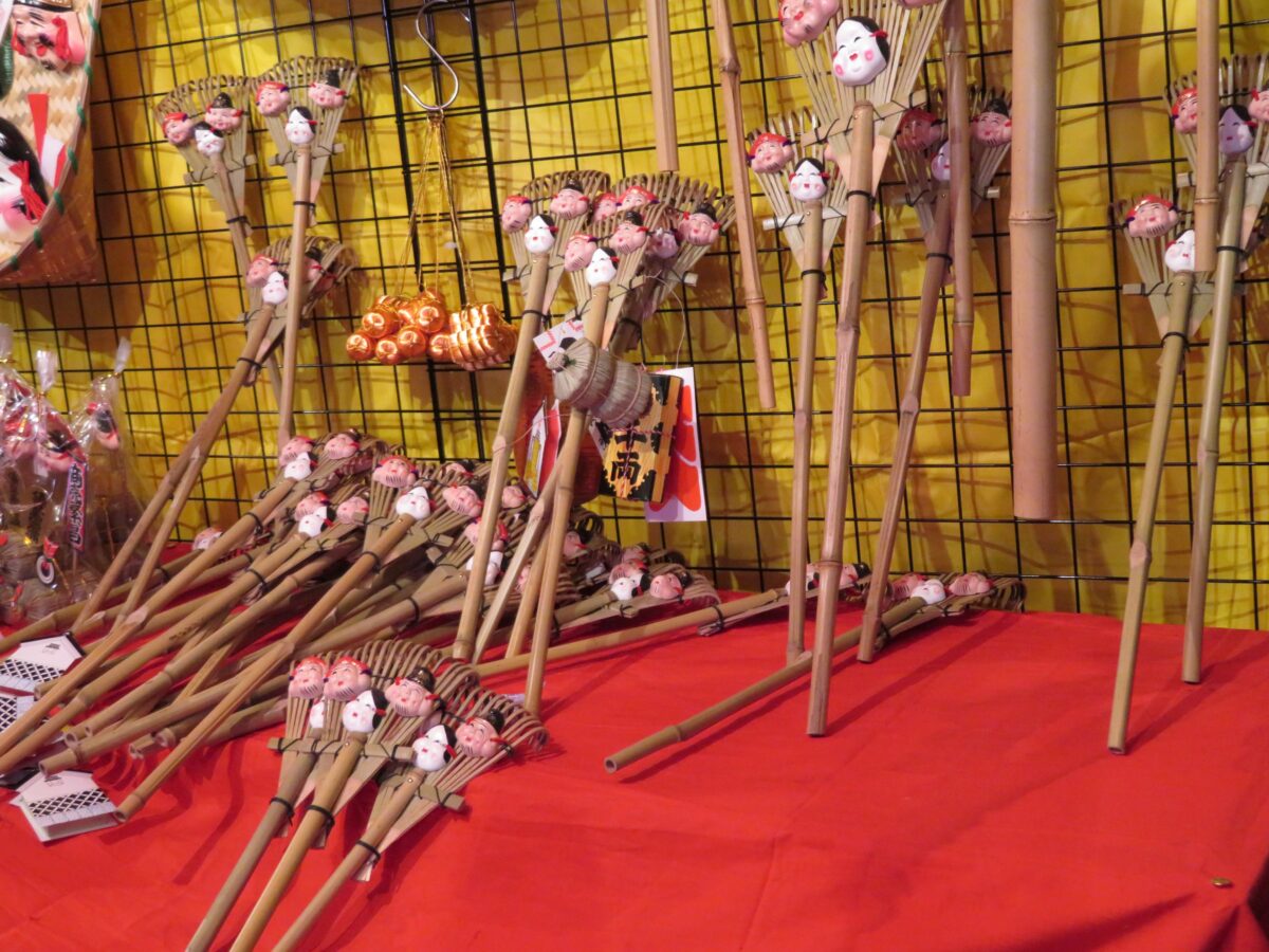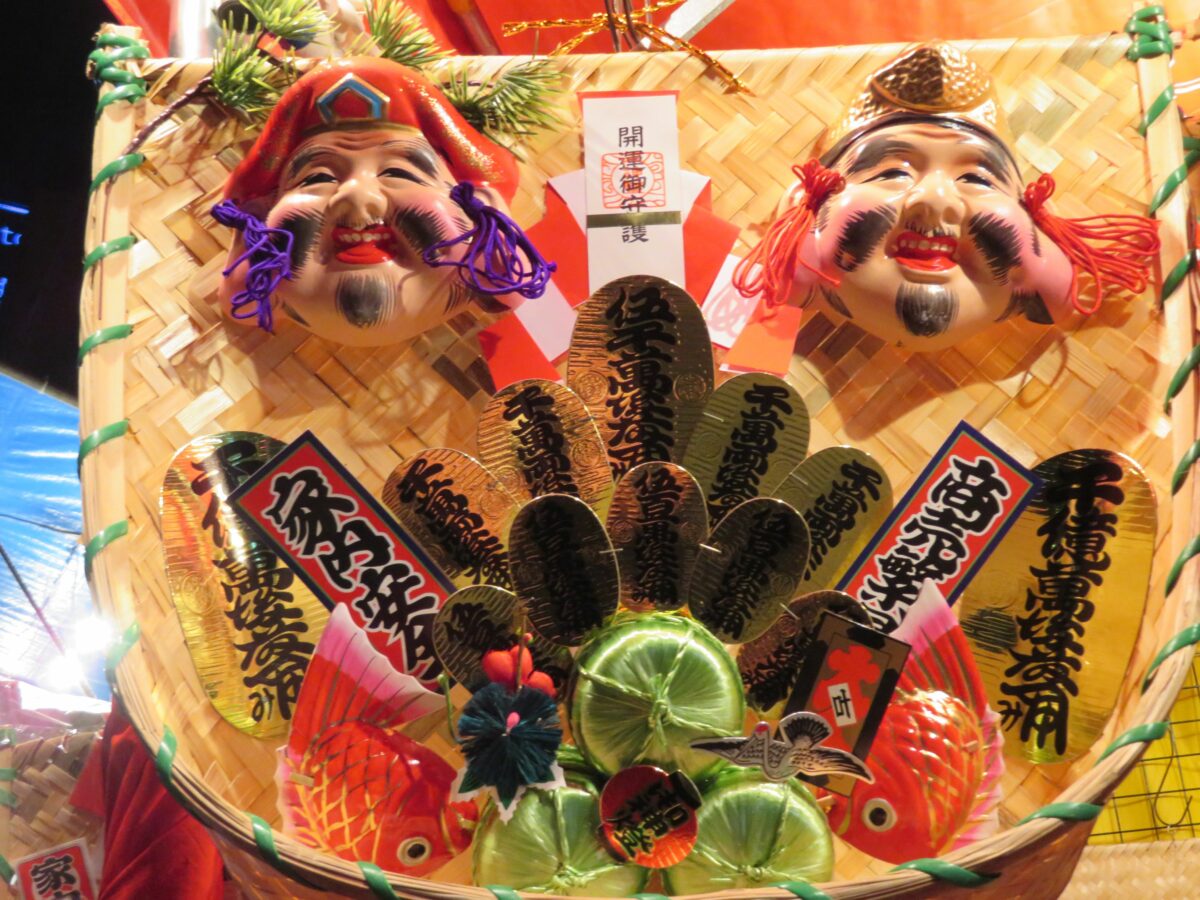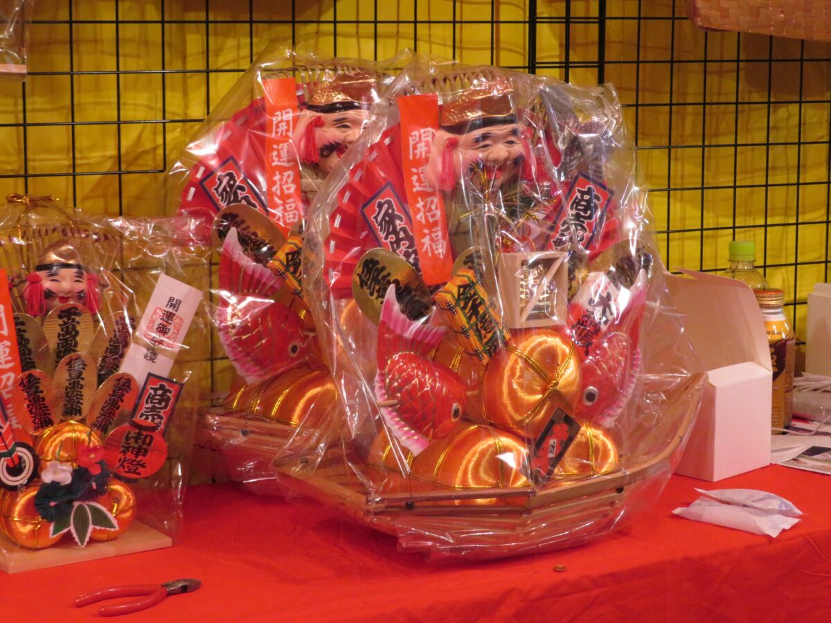 縁起物には豊富な種類が揃っています。福笹をはじめ、熊手、福箕、宝船、福俵などに恵比寿様、お多福、大判小判、鯛などがデザインされます。熊手を使えば福をかき込むことができるでしょう。福箕では福をすくいとることができるでしょう。また、御朱印には神社名の文字の上に、宝船の印が重ねられます。