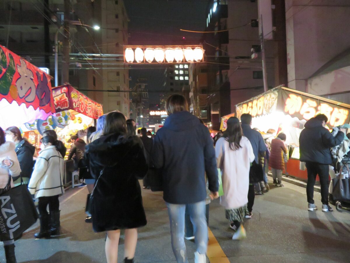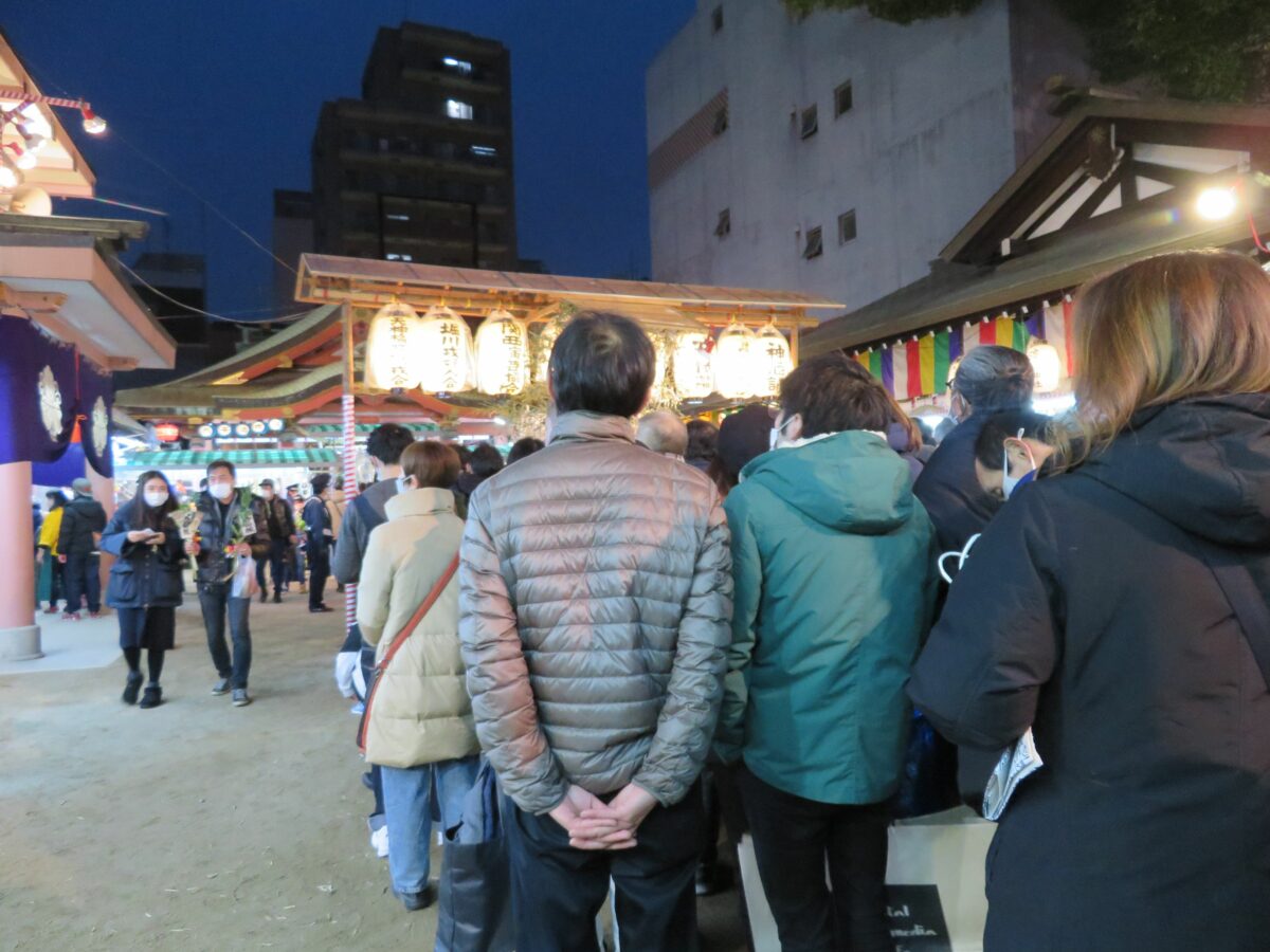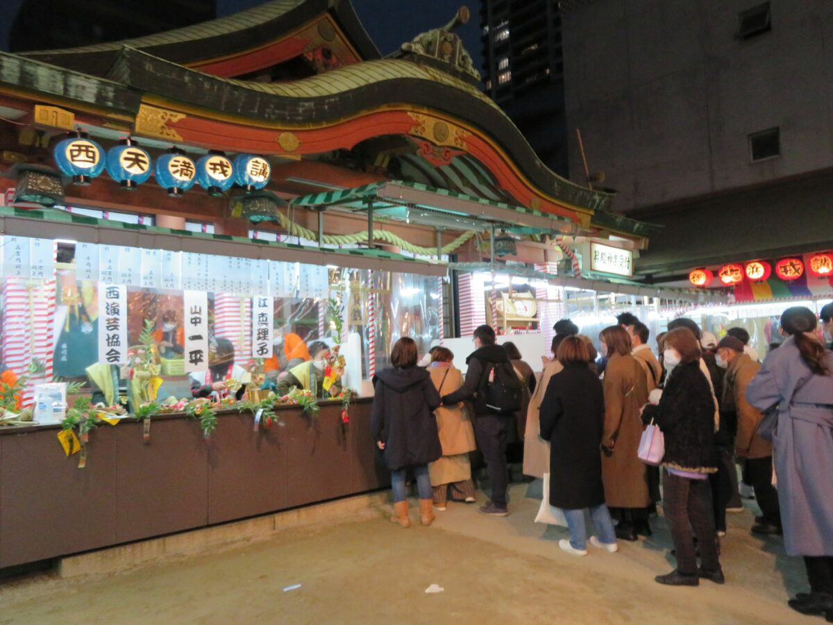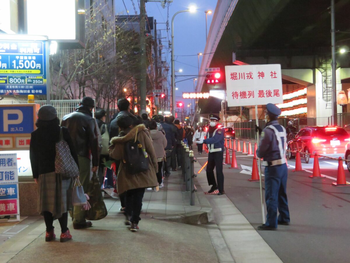 昼夜を問わず堀川戎神社に訪れる参拝者