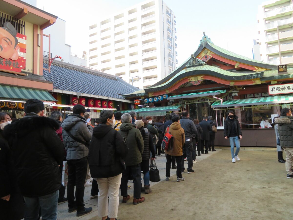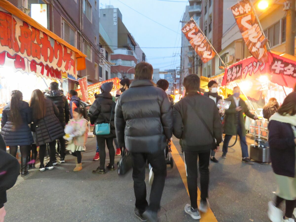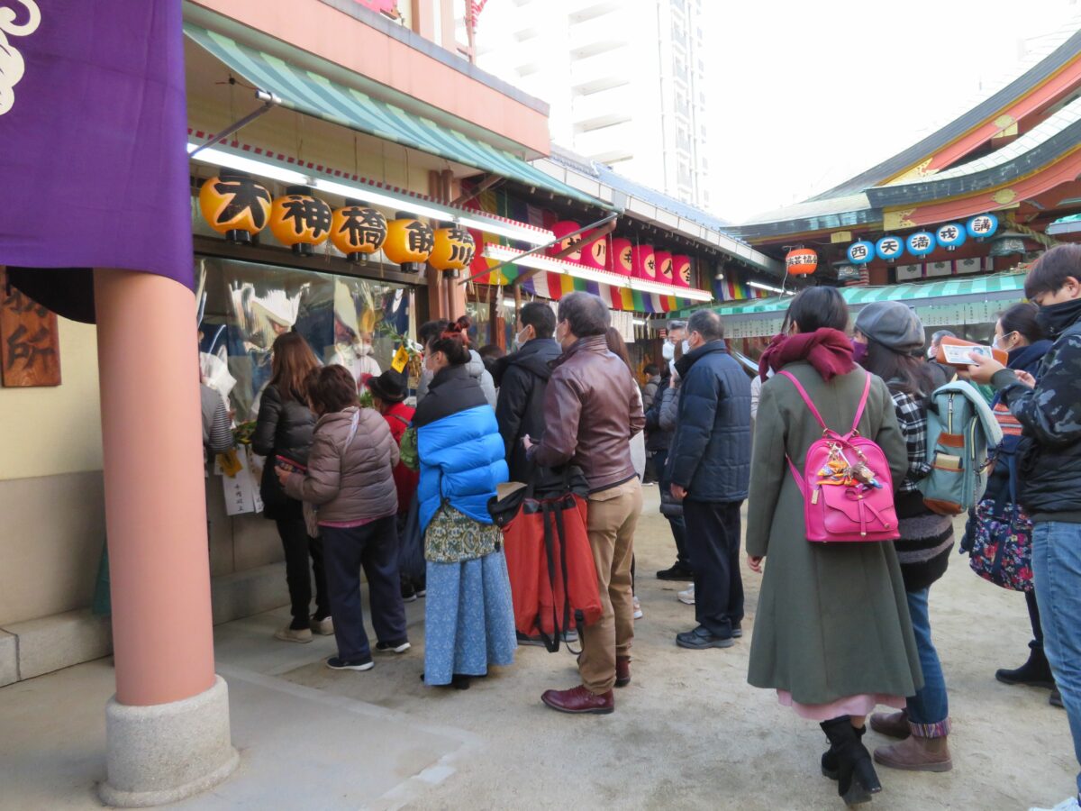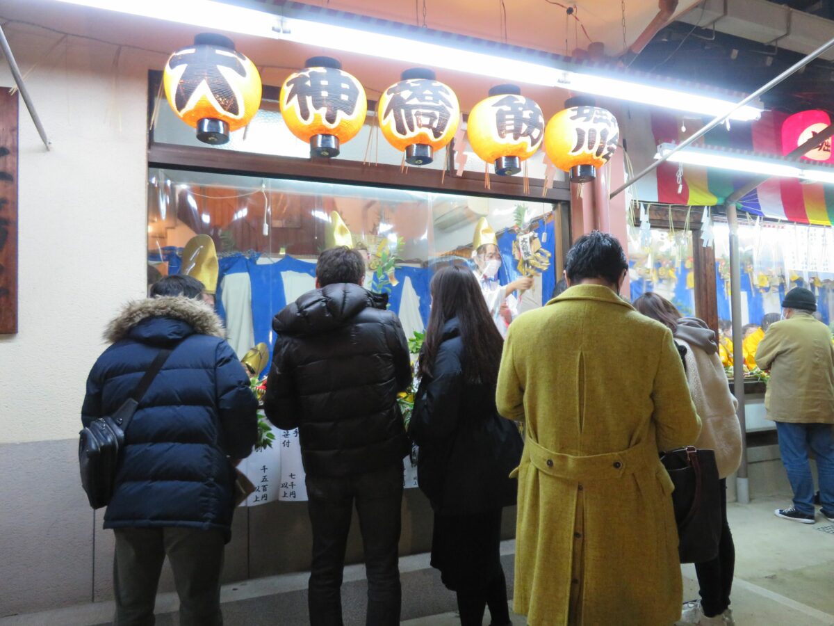 昼夜を問わず堀川戎神社に訪れる参拝者
