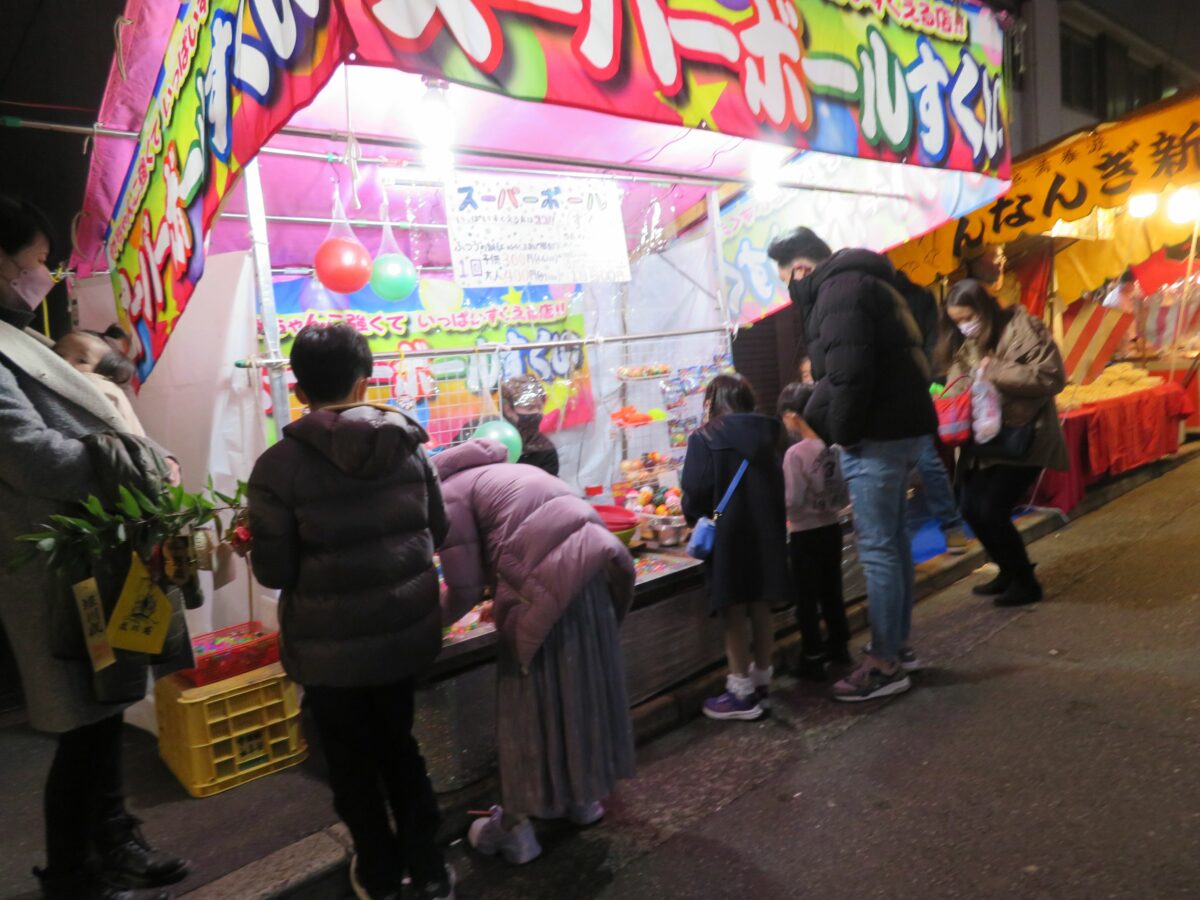 「堀川戎」では福を手繰り寄せる縁起物を頂くことができますが、堀川戎神社に向かう道中にも大きな楽しみが溢れています。神社の東西数百メートルに、隙間なく露店が並ぶのです。あらゆる種類の屋台グルメがひしめき合う中に、射的やスマートボール、金魚すくい、ボールすくいなどの遊戯店の姿も見られ、縁日などでしか味わえない楽しみが満ち溢れています。