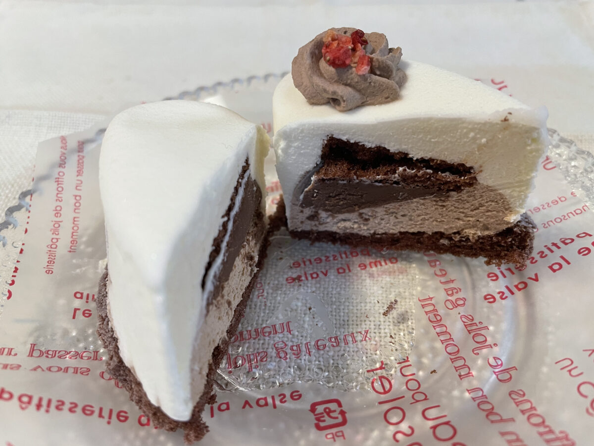 スフレやチョコムースなので、ふんわり触感で食べやすい!甘すぎず、チョコ好きな方にオススメのケーキです。