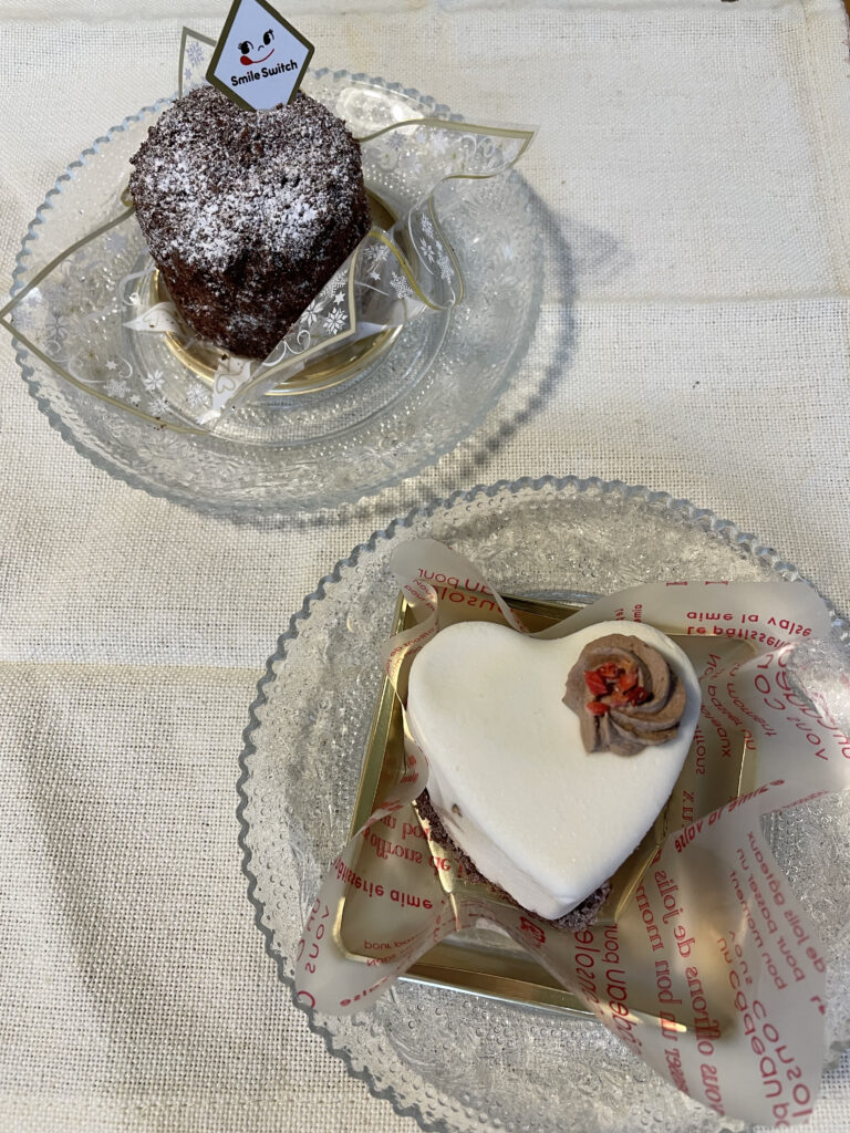 不二家バレンタイン限定のケーキは、ハート型が可愛らしい「Sweetie Heart(税込480円)」とチョコレートケーキ「雪解けショコラ(税込480円)」をチョイスしました。