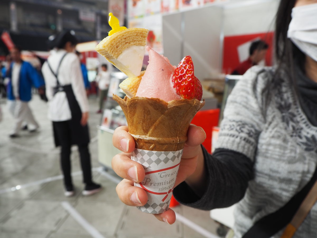 ご当地ならではさまざまな食べ物と飲み物で溢れる会場。迷いに迷った筆者ですが、今回はスイーツをピックアップ!