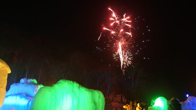 「アナと雪の女王」を思わせる氷の世界に、7色のイルミネーション、そして、極めつけの花火。