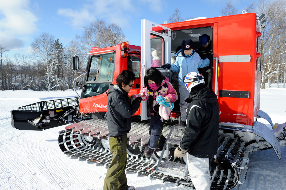 旭ヶ丘の広大な景色の中、圧雪車に乗って大雪原をめぐる「スノーキャットクルーズ」やスノーモービルがゴムボートをひく「スノーラフティング」、大きなチューブで斜面を滑る「スノーチューブスライダー」を体験できる。大人も子どもも楽しめる冬ならではのアクティビティだ。