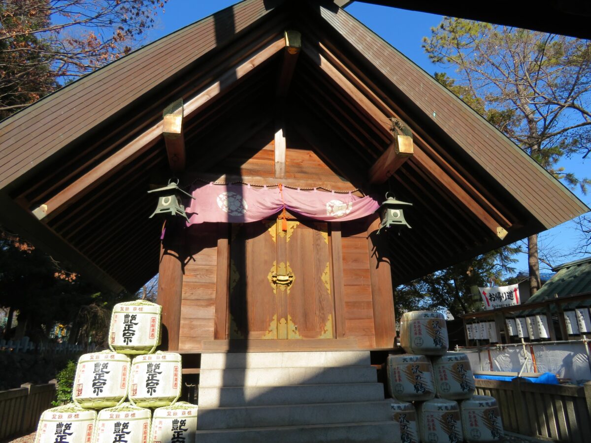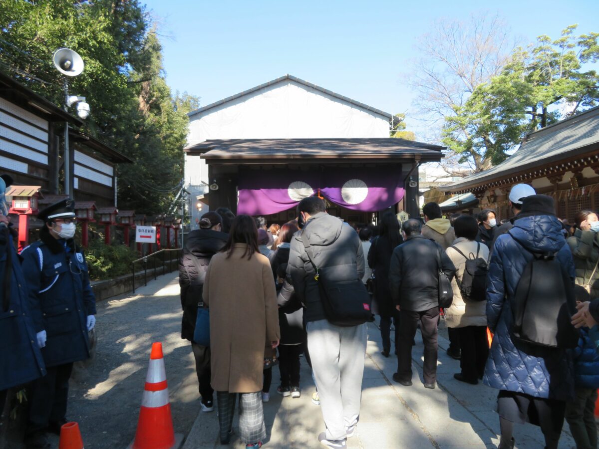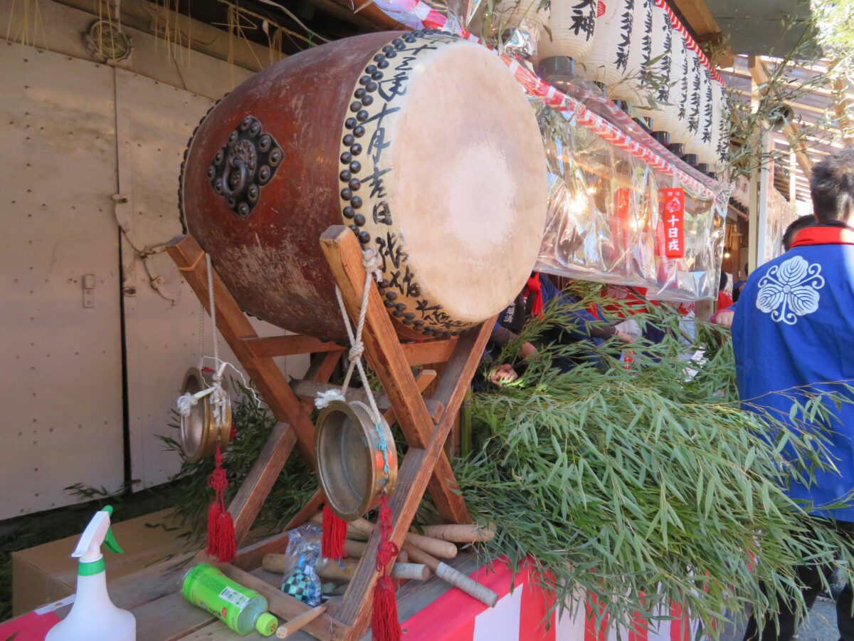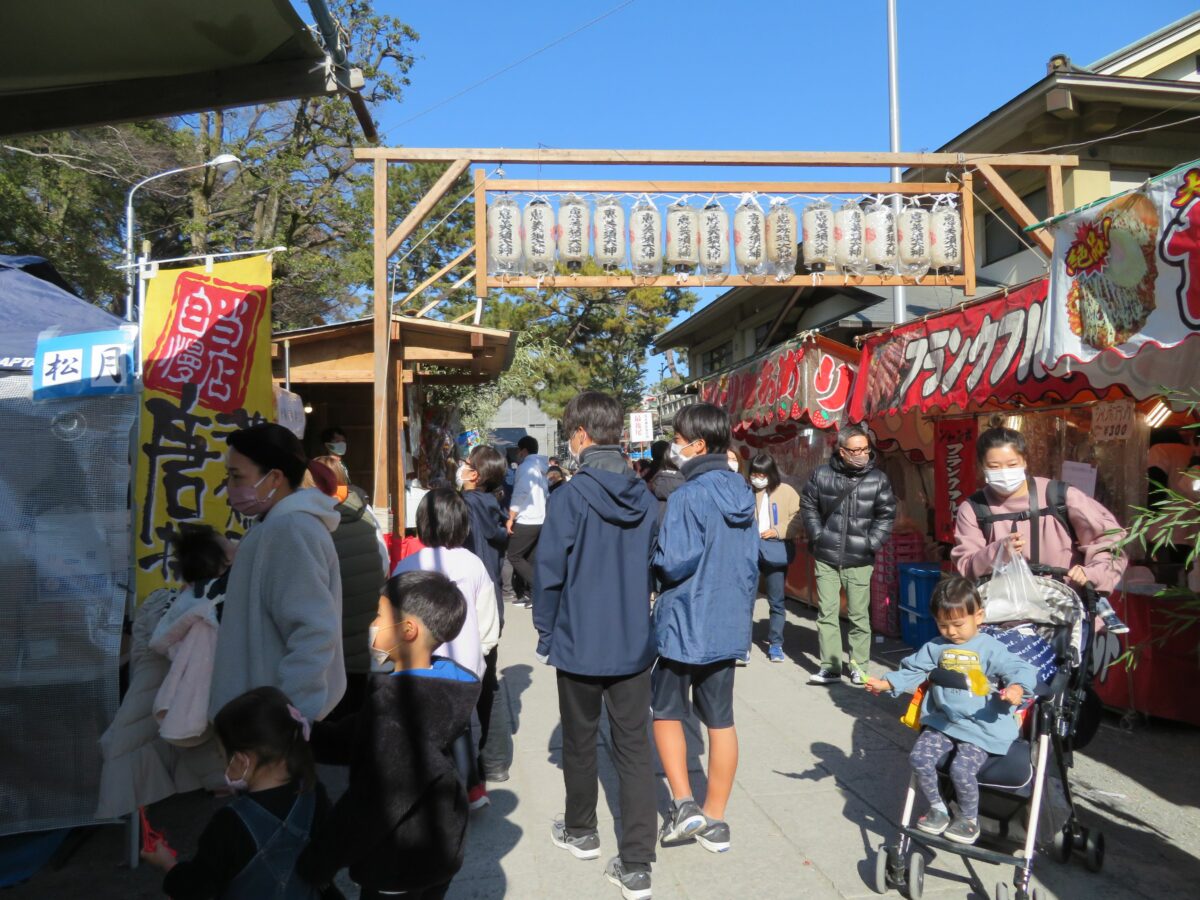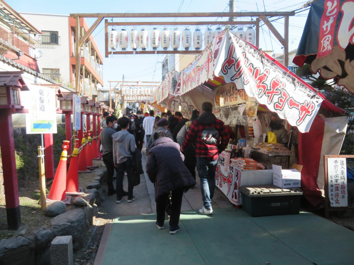 拝殿前にはマグロの他にも様々なものが奉納されますが、境内はバラエティー豊富な縁起物で溢れます。福笹をはじめ、熊手、福箕、扇、額などに恵比寿様、お多福、大判小判、鯛などがデザインされます。