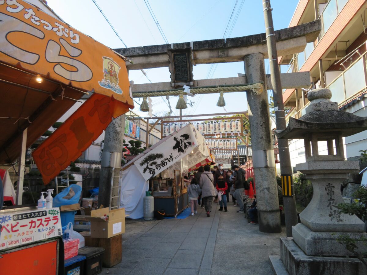 茨木神社には拝殿から南と東に参道が設けられています。いずれの参道も「十日戎」の開催日には、露店が隙間なく並びます。