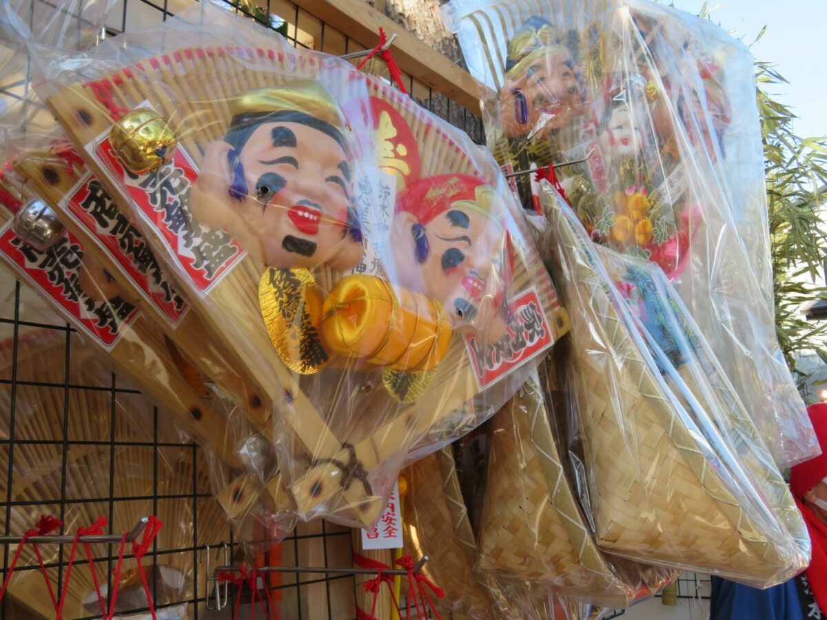 熊手を使えば福をかき込むことができるでしょう。福箕では福をすくいとることができるでしょう。福笹を受け取るときには福娘が鈴を響かせながら商売繫盛、家内安全を祈ってくれます。