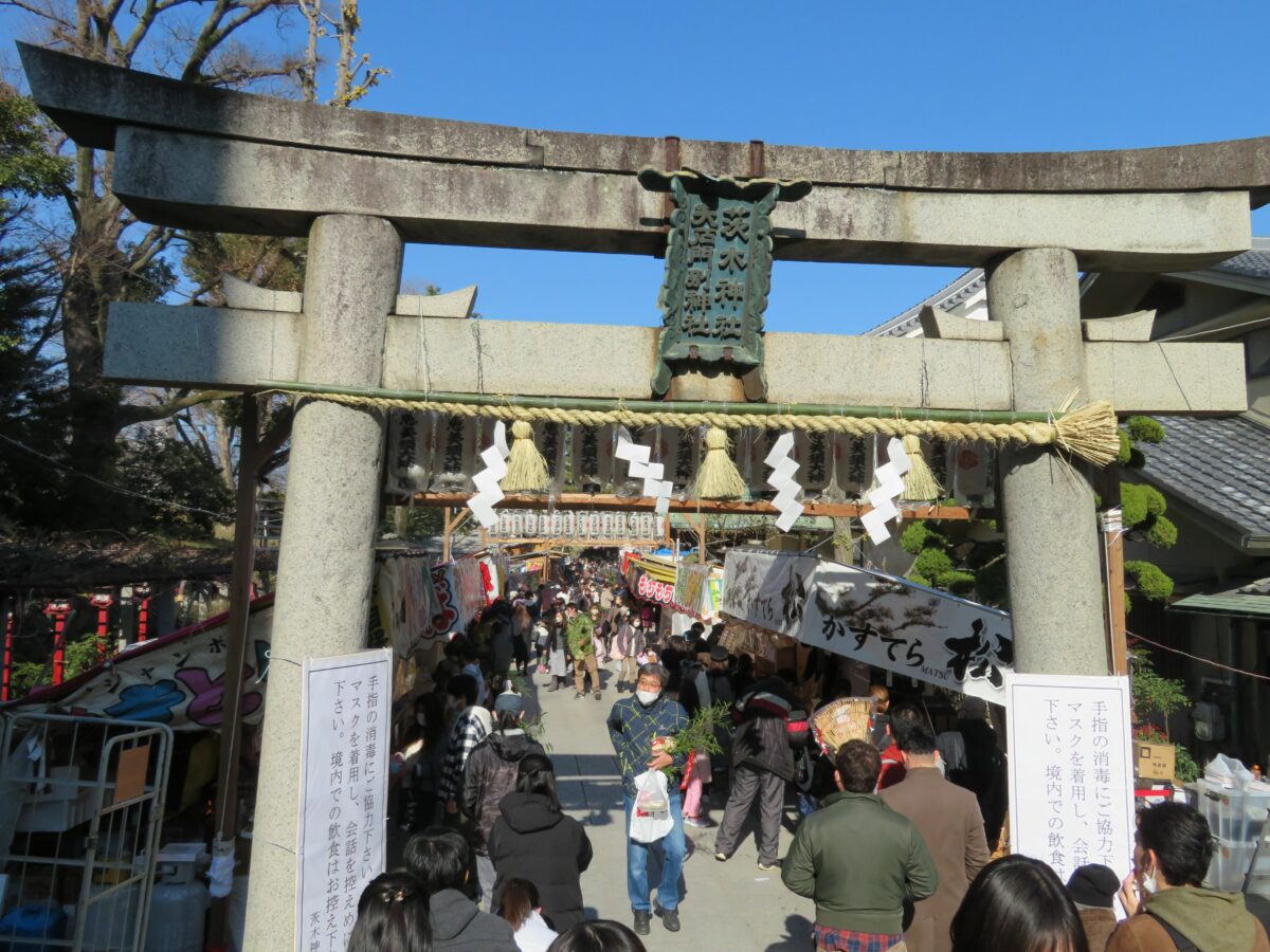 神社は阪急線の茨木市駅の西約500メートル、JR東海道線の茨木駅の東約800メートルのところに社殿を構えています。阪急線の茨木市駅からは阪急本通のアーケード商店街が、神社の東参道に導いてくれます。