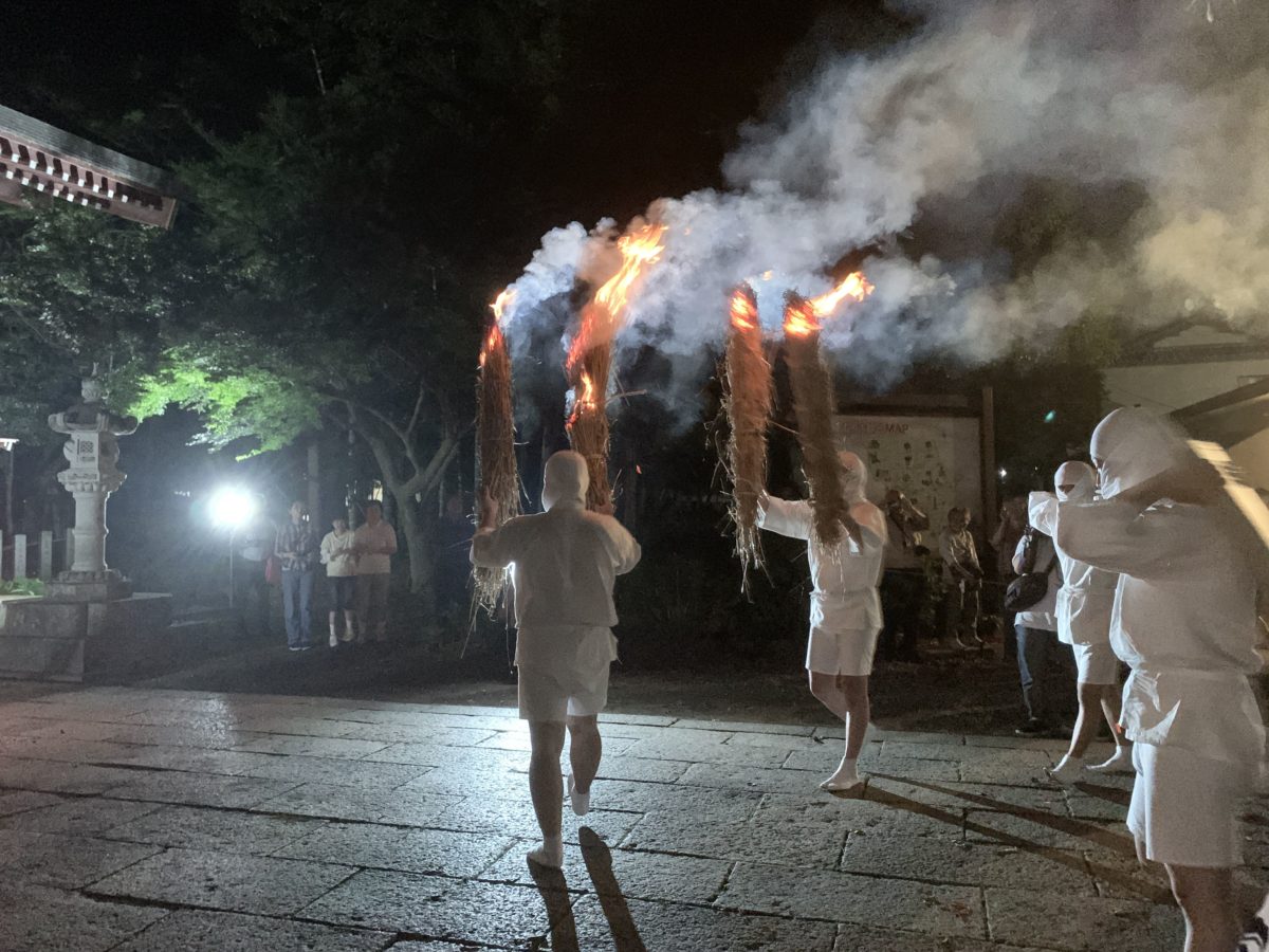 下妻市にある大宝八幡宮で9月に行われる松明祭。畳と鍋で火災を消し止めたという故事を再現する神事。火の粉を浴びると火災の厄難除けになると言われており、観客に向けて火の粉が浴びせられる一幕も。2020年からは毎年9月の第一土曜日の開催となり、見物には行きやすくなりました。