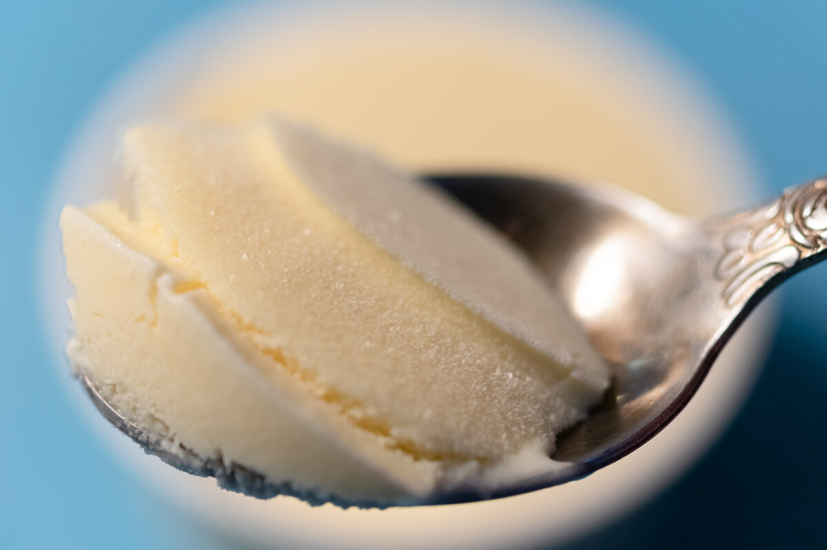 真っ白でなく薄い黄色のアイスは、甘くて濃厚なミルクの味わいと、とろけるようなまろやか舌触り。ふくよかなので甘いバニラの香りと、ミルクと卵黄のコクを楽しむことができます。1個300円位する高級カップアイスも顔負け😱、一年を通して楽しみたいアイスです。