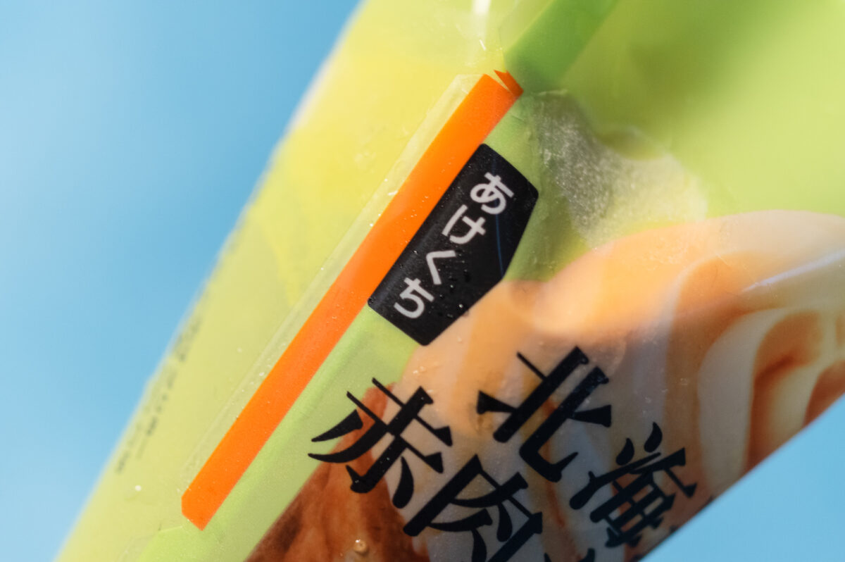 あけくち。こちらから、ペリペリと包装を剥がします。紙製でないため、まっすぐめくることができますよ。