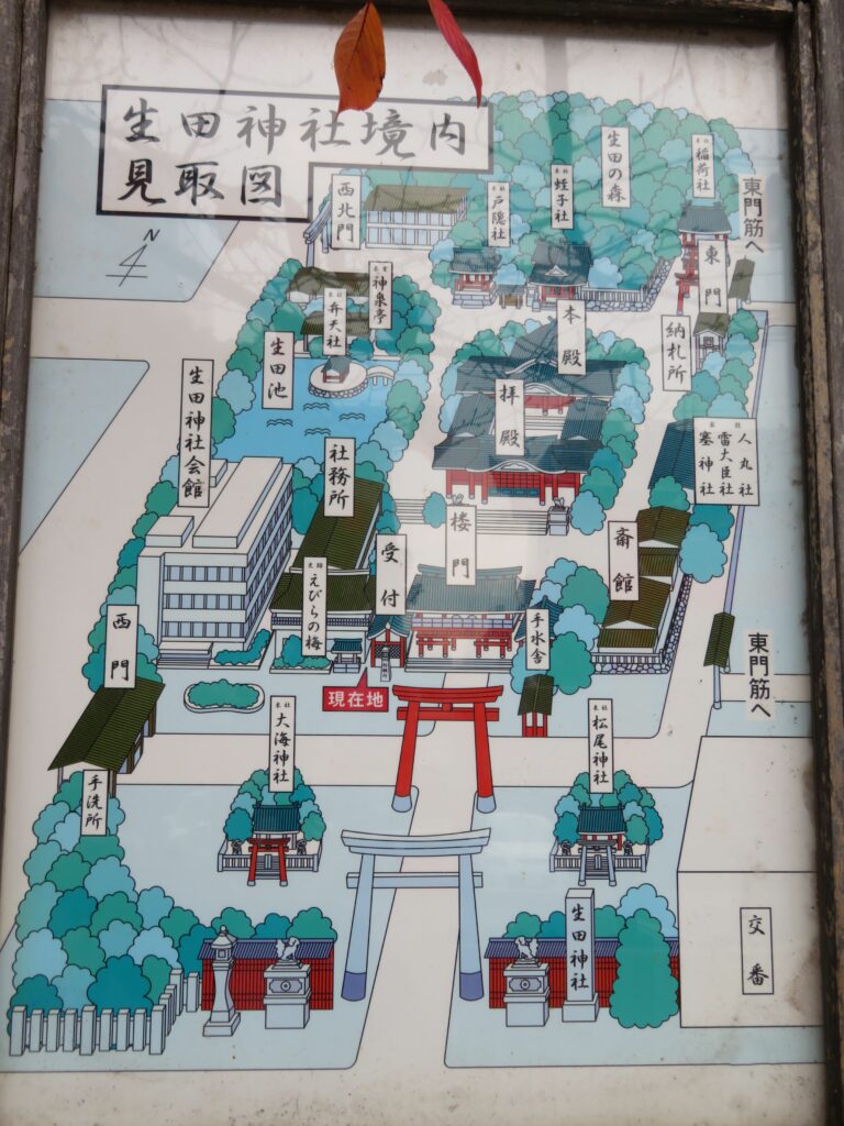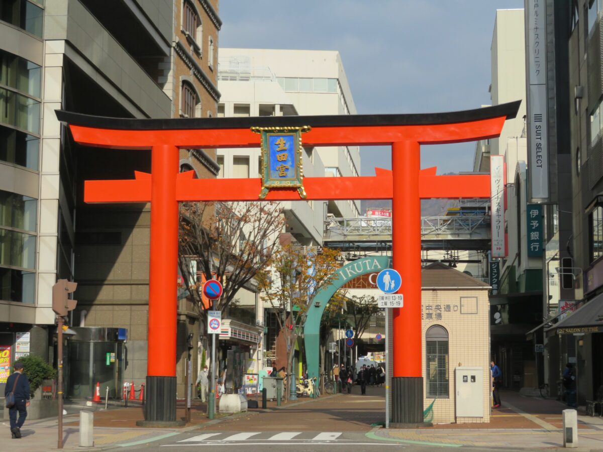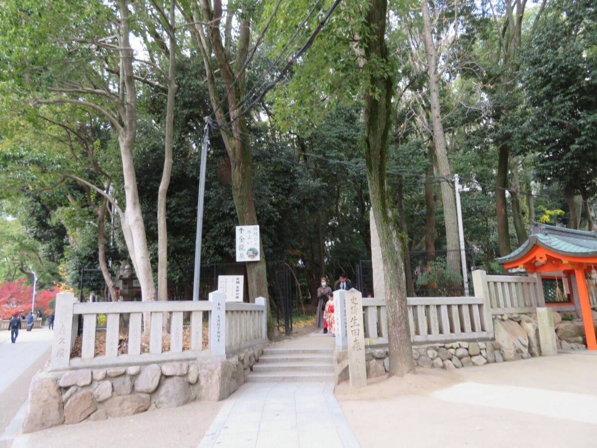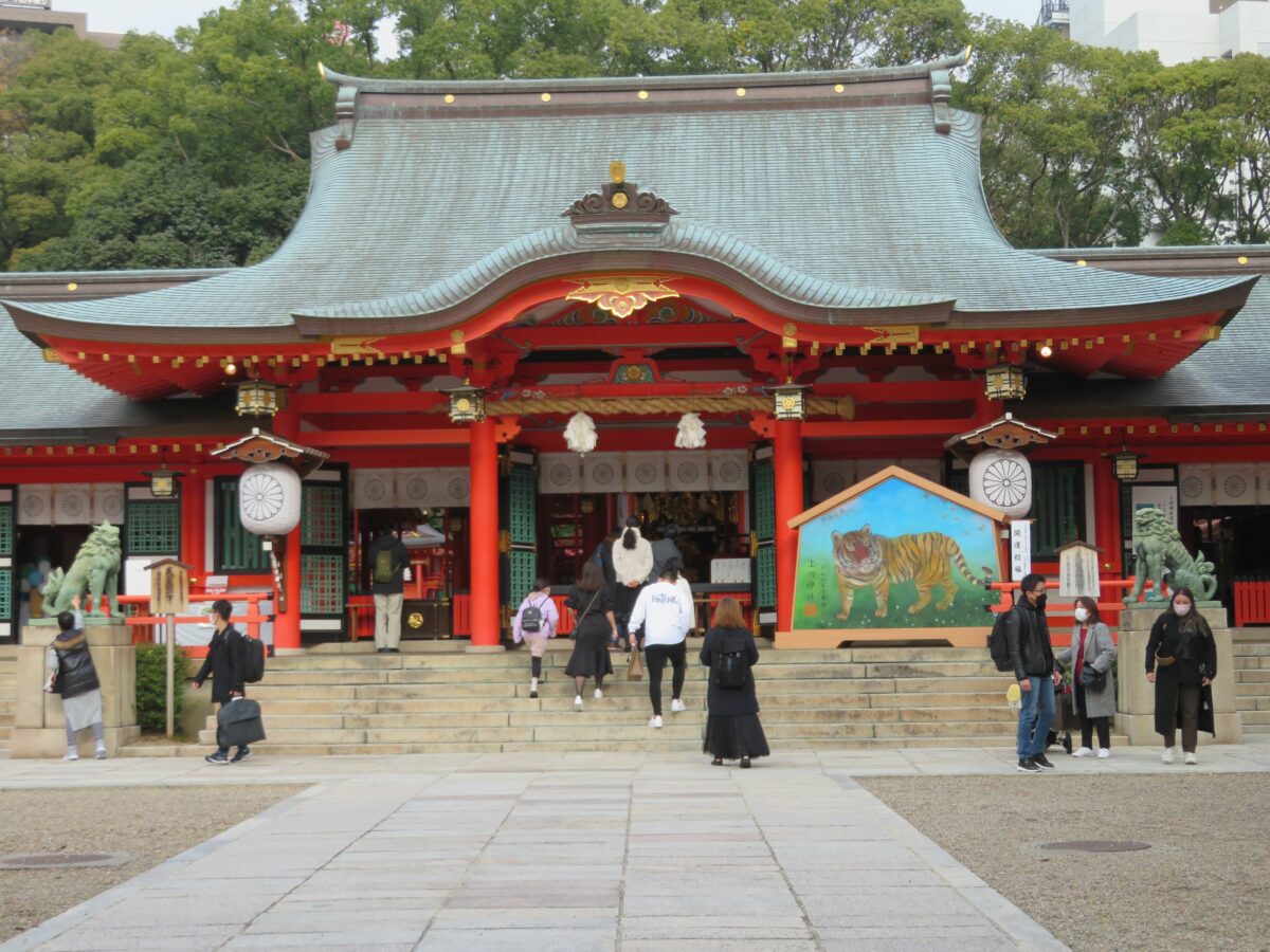 生田神社の創建については『日本書紀』の中に記述があるようです。201年に神功皇后が三韓外征からの凱旋の途中、神戸港の沖合で船が進まなくなったときに神託を受け、稚日女尊を祀ったことが起源とされています。縁むすびのご利益があるとされ、2007年には女優の藤原紀香さんとお笑いタレントの陣内智則さんの結婚式が行われました。境内の南に建つ2つの鳥居と楼門が訪れた人々を出迎えてくれます。