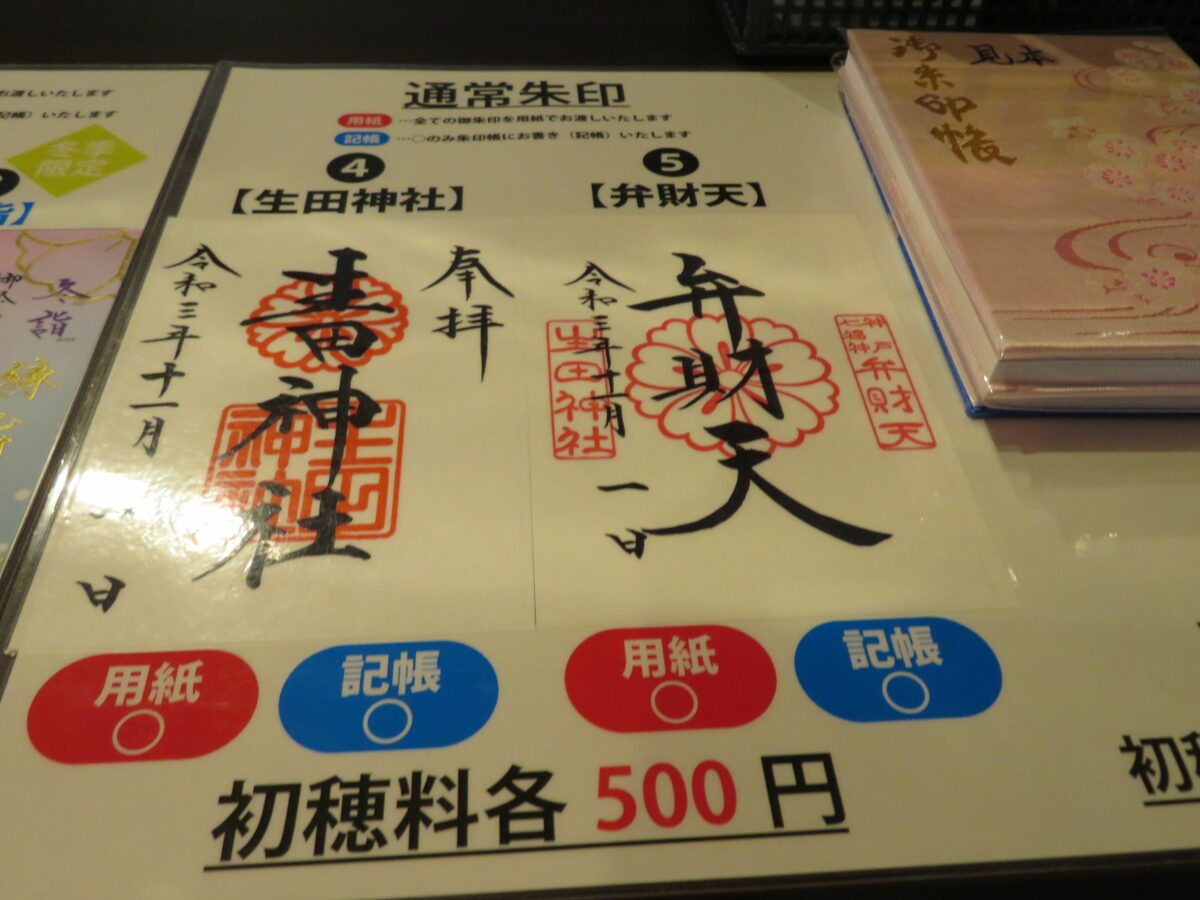 全国各地の神社や寺院では参詣の記念に御朱印を頂くことができます。朱印帳に訪れた神社や寺院の御朱印が並ぶと、貴重な思い出となり写真とは趣の異なる味わいが滲み出てくるものでしょう。神戸市の三宮のショッピング街に社殿を構える生田神社では多種多様の御朱印が頒布されています。通常の御朱印には「生田神社」、「弁財天」の文字が読みやすい書体で記されます。