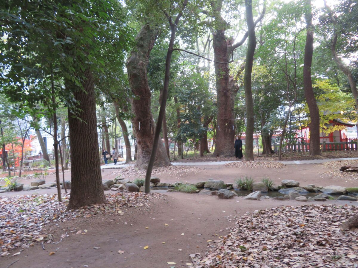 4月上旬には、境内の北エリアに広がる生田の森で、春献茶祭の「曲水の宴」が行われます。木立を爽やかな風が吹き抜ける森は、平安時代には源平合戦の戦場となりました。