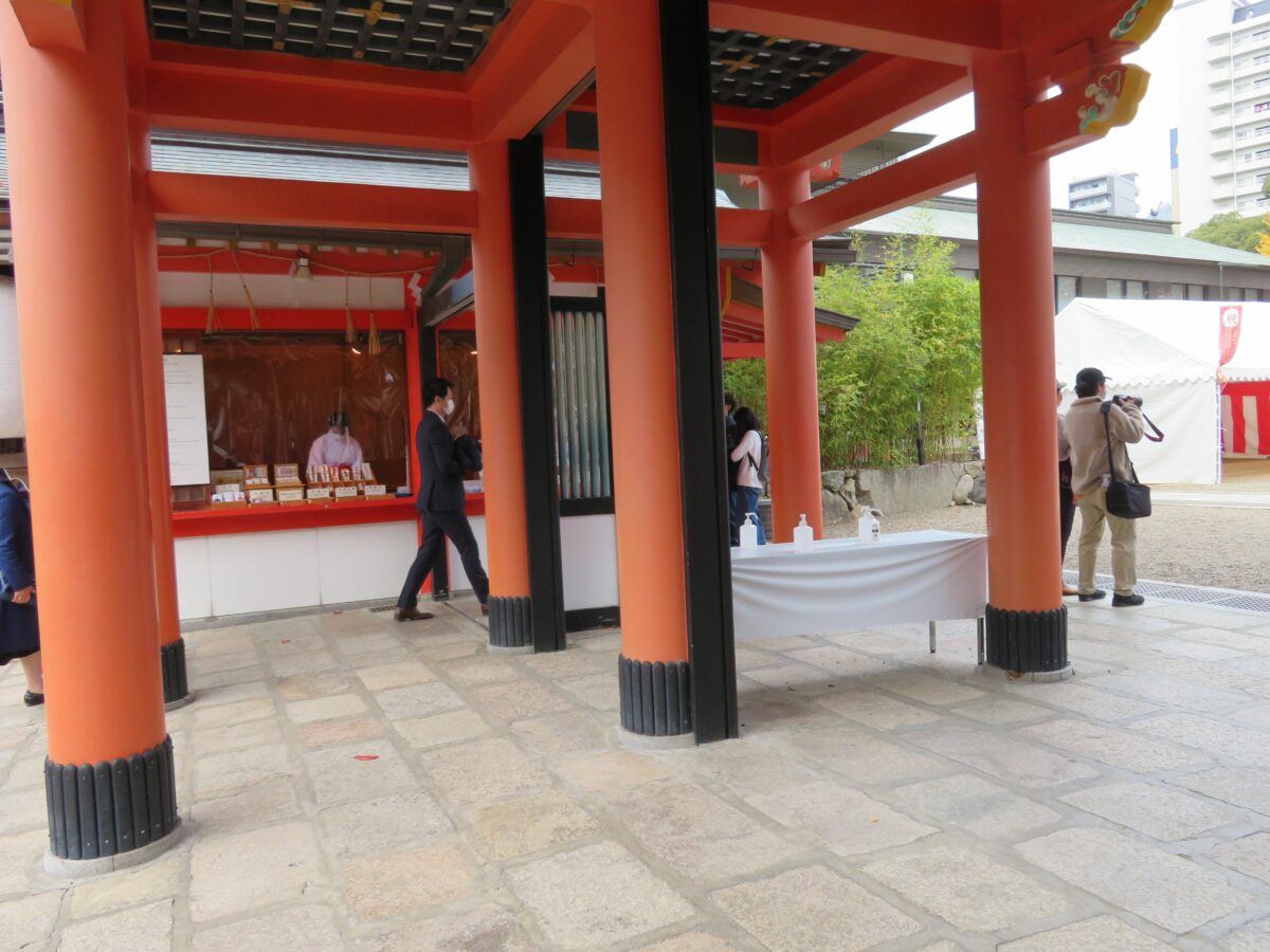 生田神社の御朱印受付は拝殿の西に建つ社務所の1階に設けられています。窓口にはオリジナルの御朱印帳も準備されています。