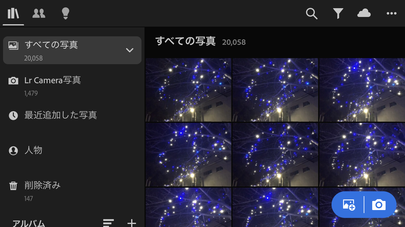 まず,はじめにLightroomを起動しましょう。左ナビの「すべての写真」を選ぶと,iPhone標準のカメラで撮影した写真も表示されます。