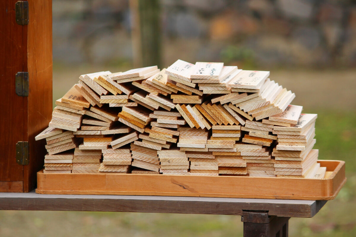 儀式の後は境内へ出てきて火焚がはじまります!事前に参拝者によって納められた、護摩木が用意されています。