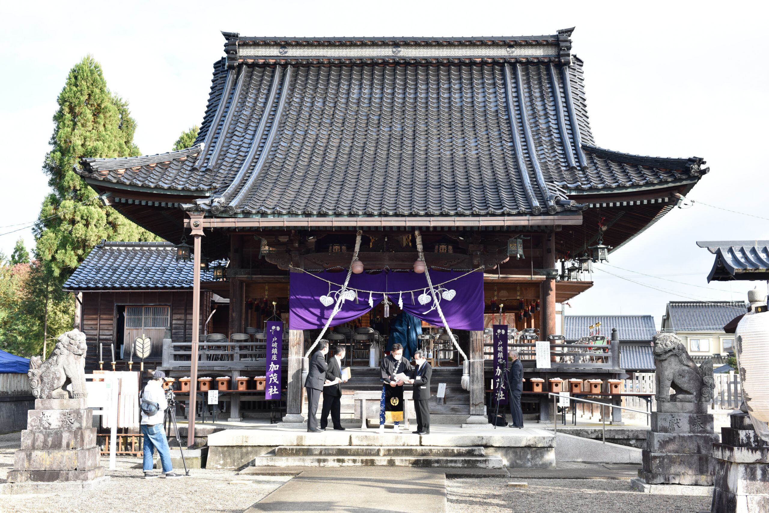 この戸破という地域は元々、京都の上賀茂と下賀茂の両神社の荘園があった場所。周辺には数々の「加茂社」が存在する中、戸破という名が付くのはこの神社のみである。この神社は今から100年前、大正3年に火災にあって拝殿を失い、その6年後、大正9年に立派な拝殿が再建された。今回はその100周年ということで、毎年行われる秋季例祭を少し規模を大きくして執り行った形である。秋季例祭は例年、11月1日が前夜祭で2日が本番となっているが、今回は文化の日に合わせて2日が前夜祭、3日が本番という形で開催された。