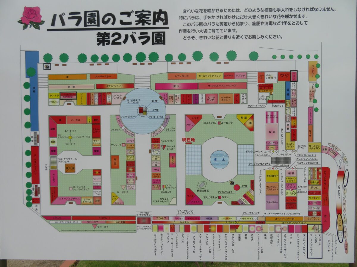 第2バラ園の中央には設置されており、その東にはハート形のオブジェ、西にはトンネルがバラの花で形作られています。トンエルの中の鐘を鳴らすとロマンチックなムードになるかもしれません。また園の西端には展望用のベンチが並べられ、少し高い位置からバラ園を見下ろすことができます。