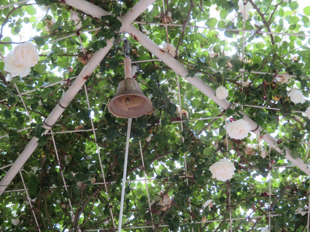 第2バラ園に設けられるバラのトンネルに吊るされる鐘