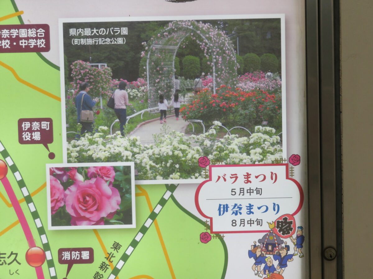 ニューシャトル大宮駅に掲示される「伊奈町バラまつり」の案内