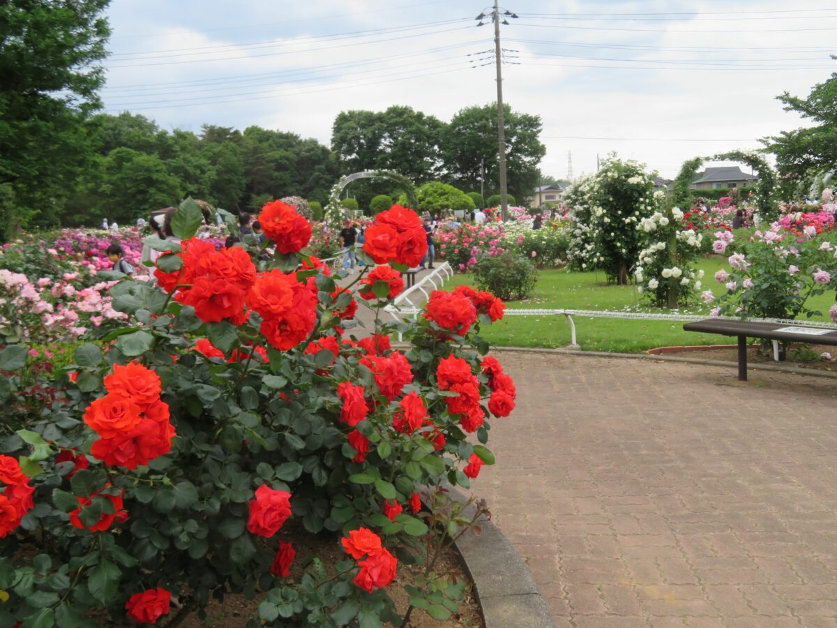 バラを町の花に定める埼玉県の伊奈町では、伊奈町町制施行記念公園に県内最大規模のバラ園が整備されています。例年5月上旬から6月上旬にかけて400品種5000株を超えるバラが豊かな彩りで園内を覆い、「伊奈町バラまつり」が開催されています。