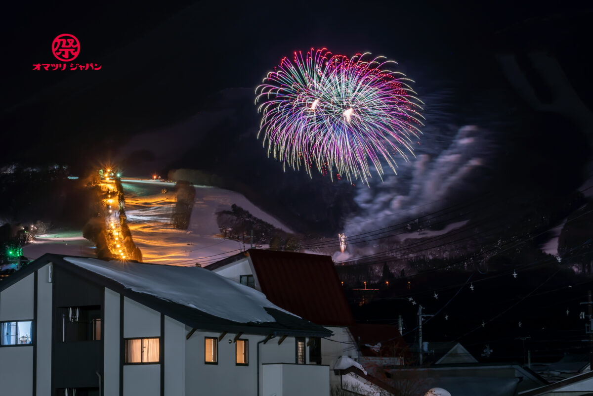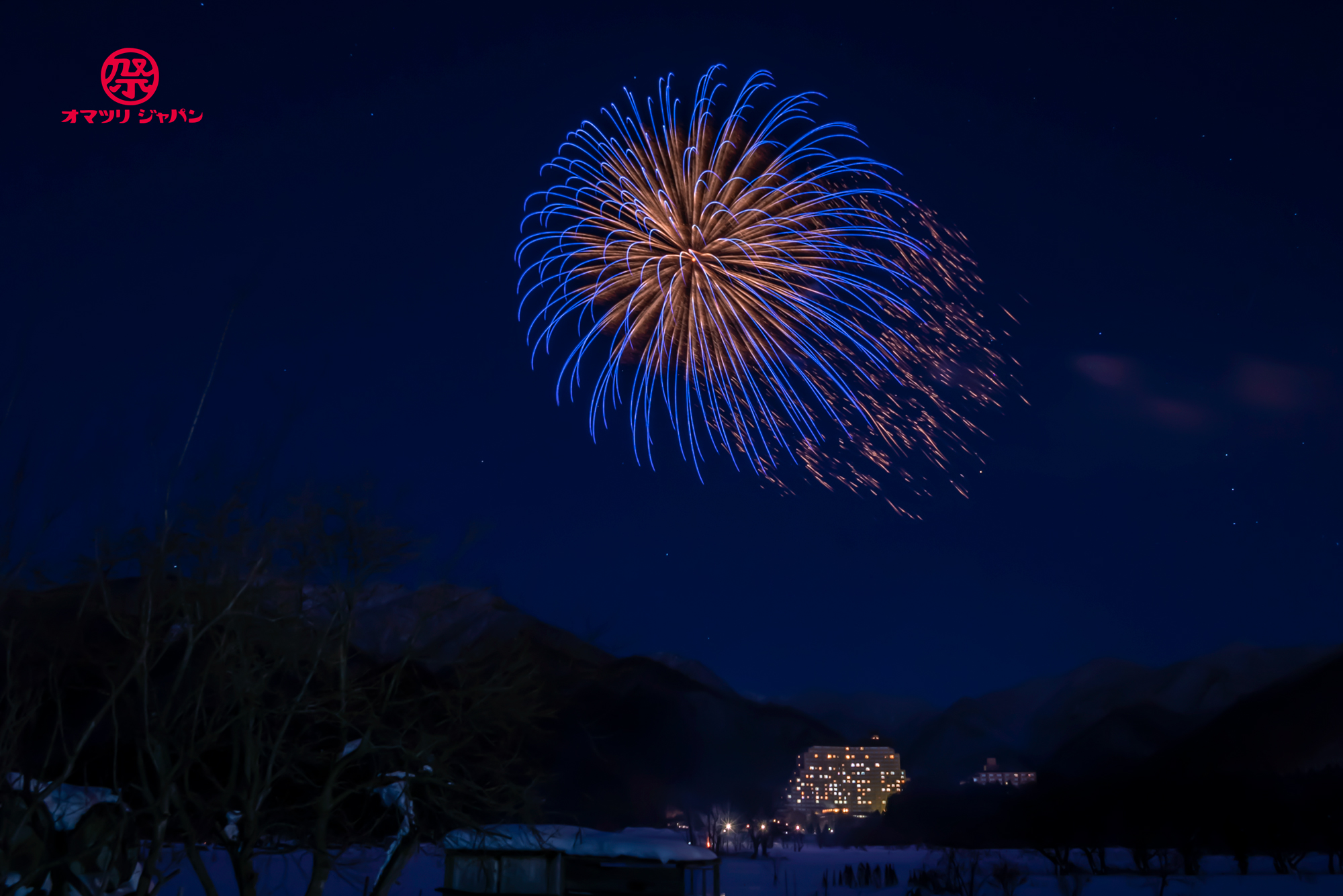 時間的には5~10分程ですが、最大5号玉(開花直径150m)の花火が打ち上がり、スキーシーズンが終わる3月20日までの毎週土曜日と祝日に開催されます。(※2月5日以降は18:30開始)