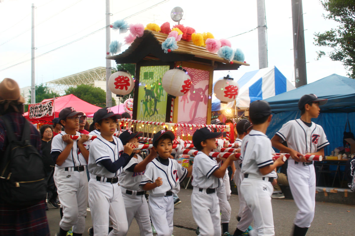 市民が楽しむお祭りと言うことで、青少年も活躍しています!こちらは地元少年野球チームのお神輿です。