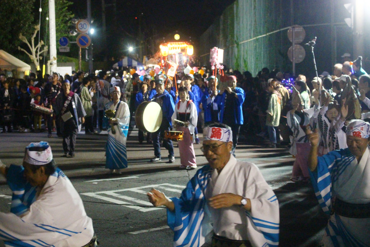 さあ暗くなってくると、昼間とは違った活気が出てきます。17時15分からはじまる入間行列では踊りの後からたくさんの山車・屋台・お神輿が続き会場を盛り上げます!