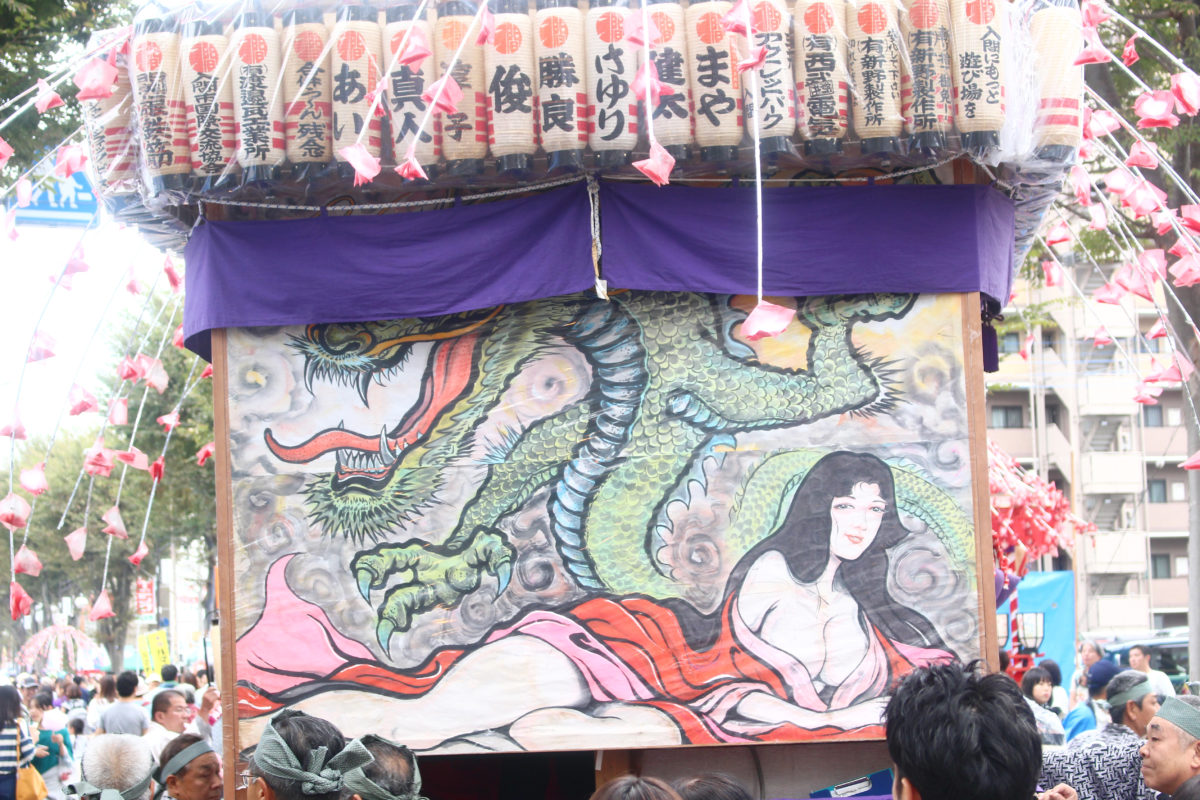 山車の背面には各々絵や飾りが施されているのですが、こちらのように攻めている山車もありました笑