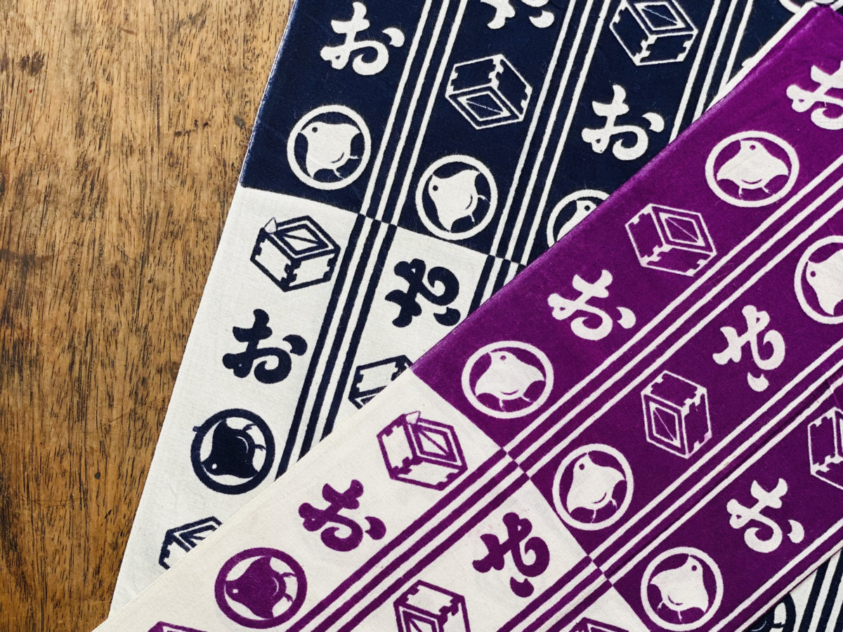 【#ステイホーム盆踊り】キャンペーンの上位3名にプレゼントされる、郡上捺染で作られた『おどります手ぬぐい』。『お』+『千鳥』+『〼』で『おどります』と読ませる粋なデザインだ
