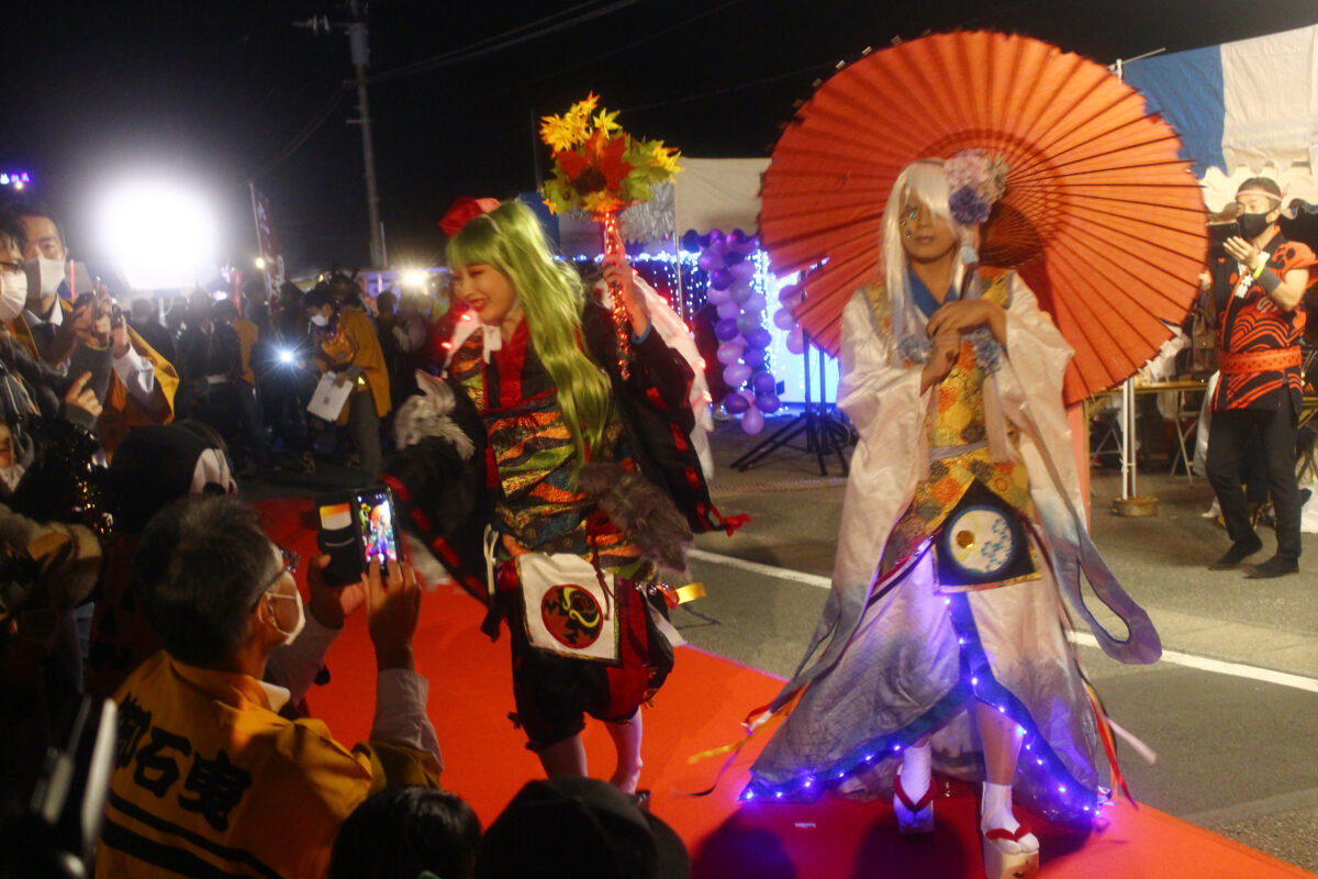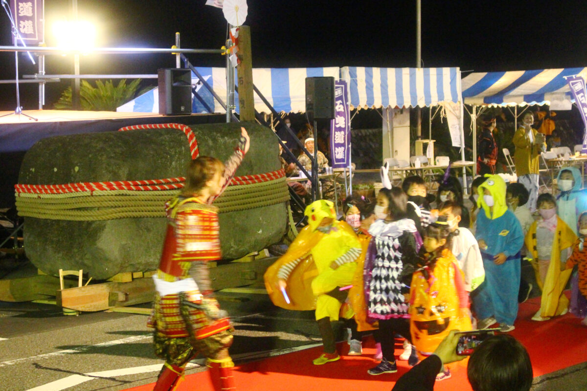 本来は石曳き道灌まつりと言う名前の通り、巨大な石を曳くことがメインのお祭りなのですが、例年240名が集まって曳くことから密になってしまうため、今年のお祭りは違う形に。10月31日が近いと言う事もあり、ハロウィンを取り入れたユニークな内容で行われていました。