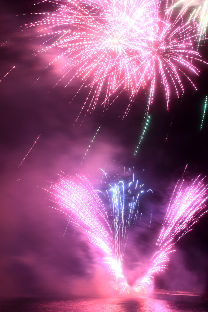 お祭りのクライマックスを飾るのは、20分間の花火大会!例年夏に行われてきた花火大会が今年は中止になっていたため、地元の方にとっては悲願の花火となりました。