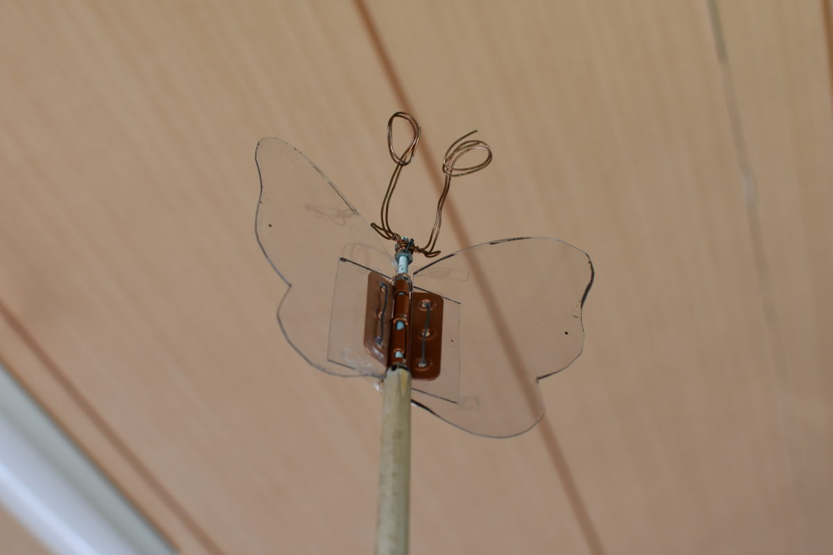 そういえば、石川県加賀市の近くにある白山市でこんなタイプの棒も発見しました。先端が蝶々です。先についている針金がすぐに曲がってしまいそうな予感がしますが、なかなかにユニークですね。この他にも、剣、薙刀、太刀、大太刀、鎖鎌など棒振りの持ち物は様々です。