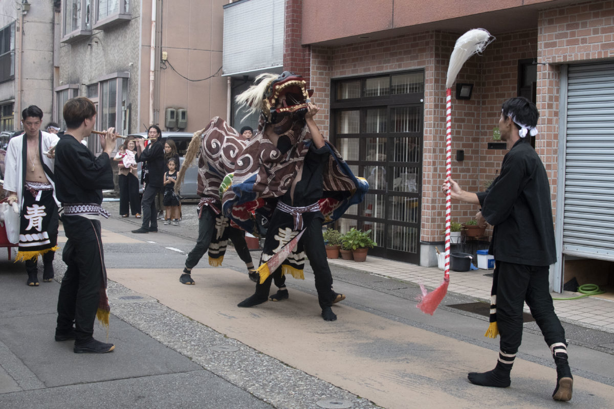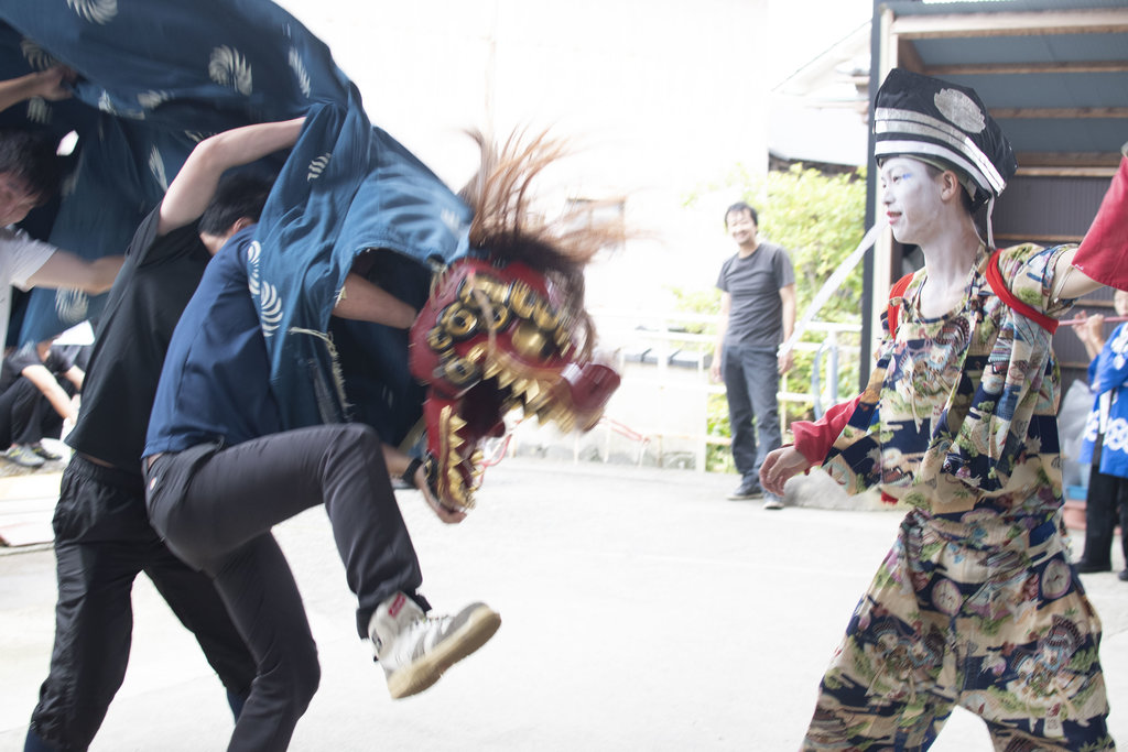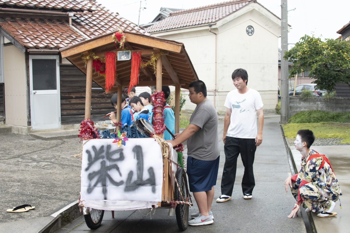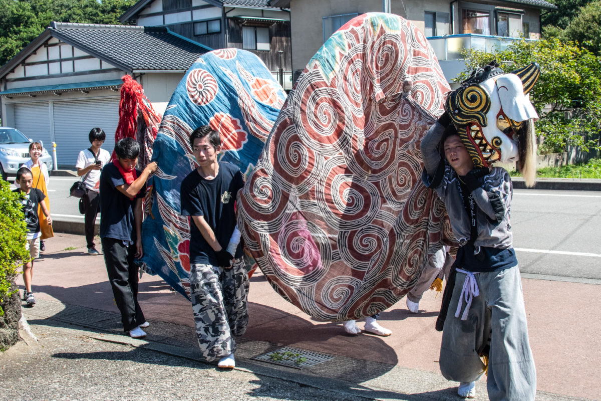 上の写真のリアカーは柴山町の獅子舞で使われるものです。大人たちがお酒を飲んで、獅子舞の道具を車で運べなくなった時、このリアカーを使っています。リアカーを導入した地域は柴山町以外、現状聞いたことがありません。どの地域も自分たちなりの獅子舞を探ってきた結果として、小道具が作られています。獅子舞を見るときには小道具に注目してみると、また新しい地域の一面が見られて面白いです。