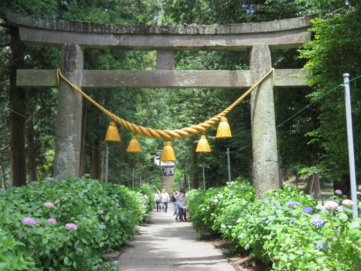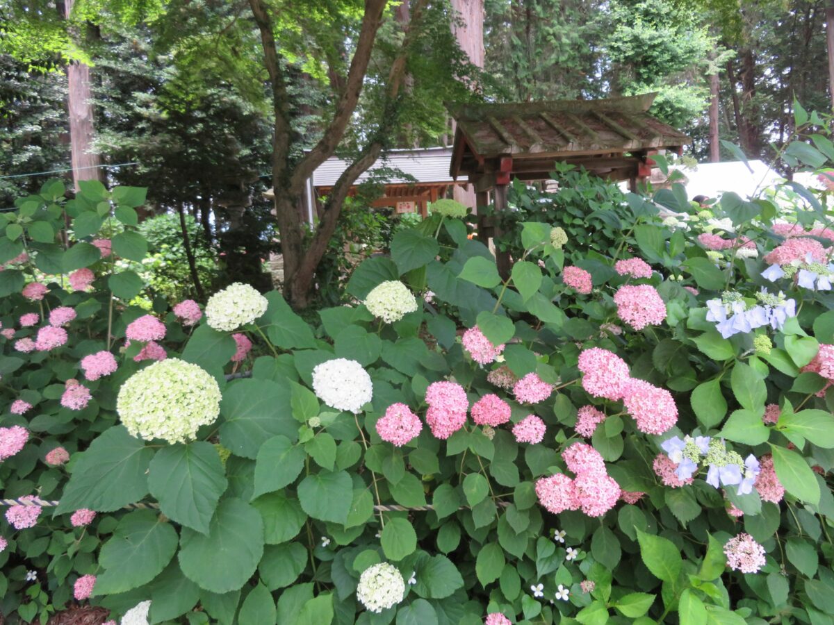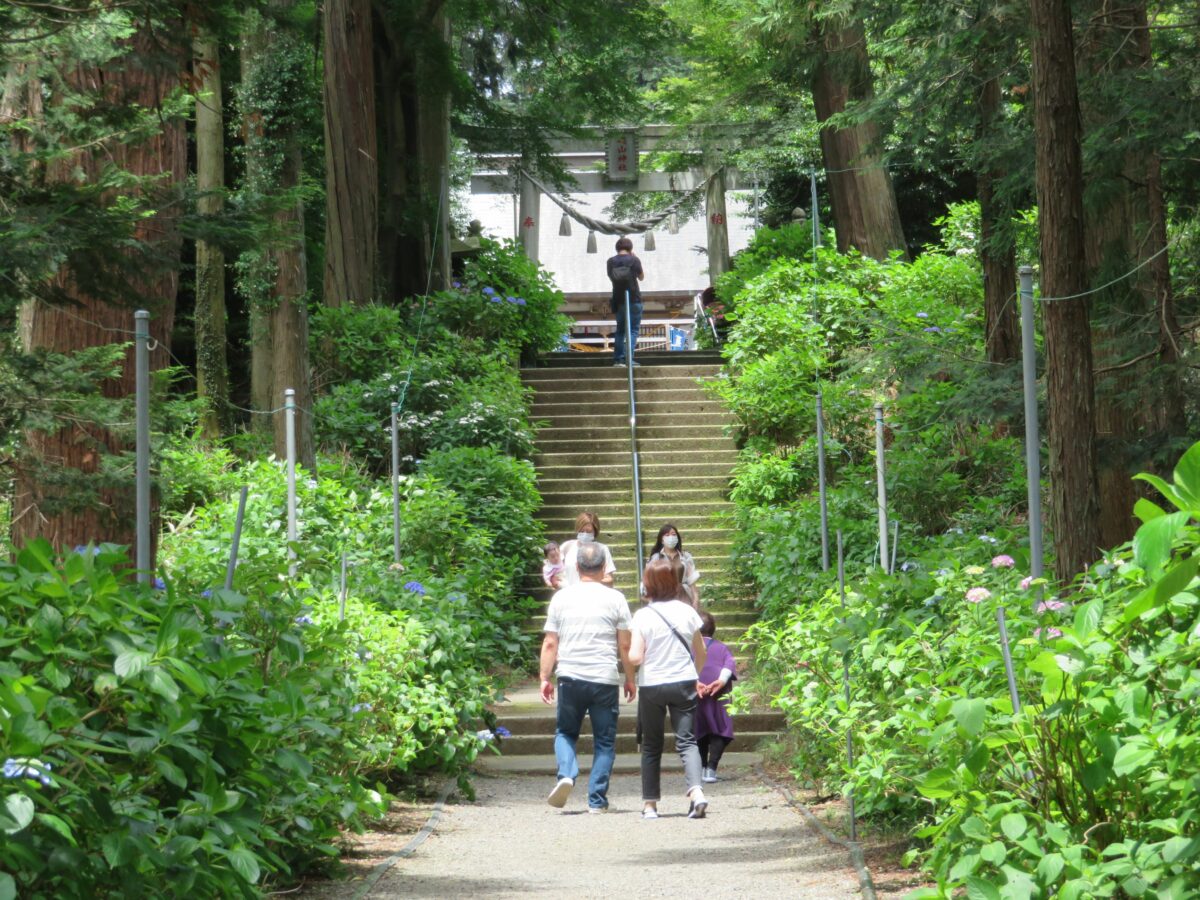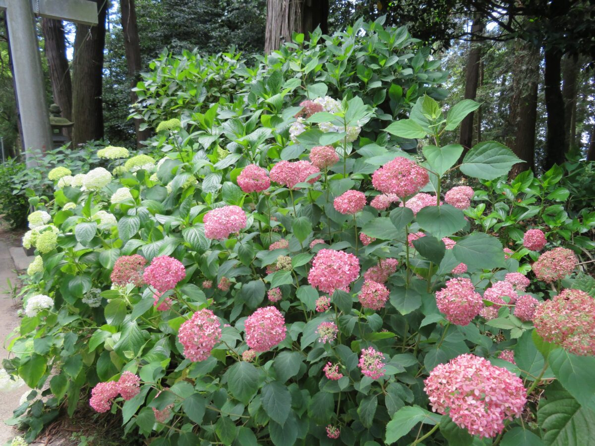 栃木県鹿沼市に社殿を構える磯山神社では、創建1000年を迎える直前からあじさいの植樹が行われました。今では約28種、約2500株のあじさいが育ち、例年6月中旬から7月上旬には境内や参道を初夏の豊かな彩りで包みます。