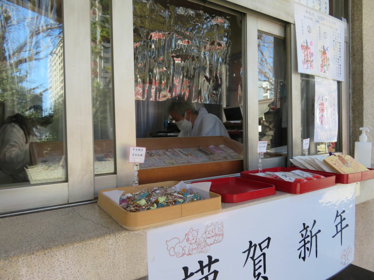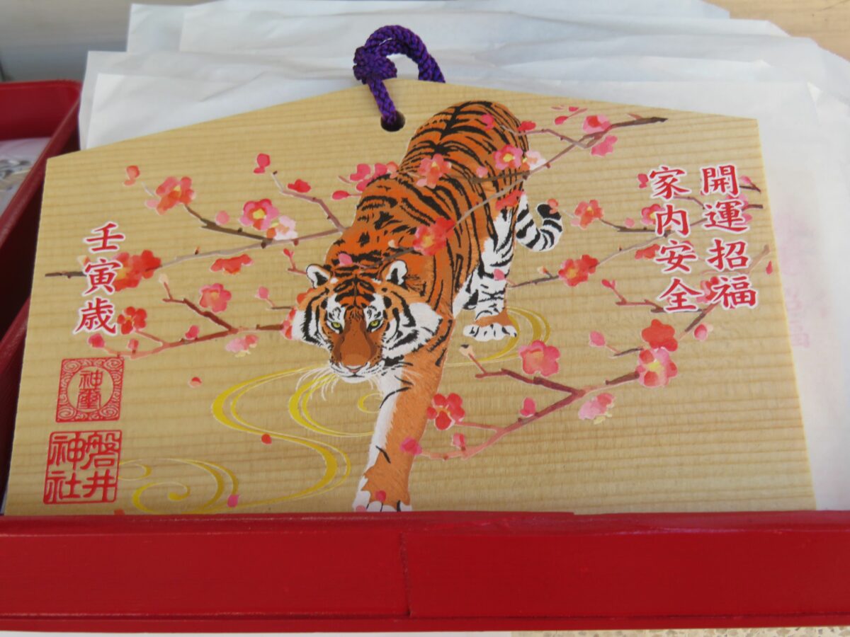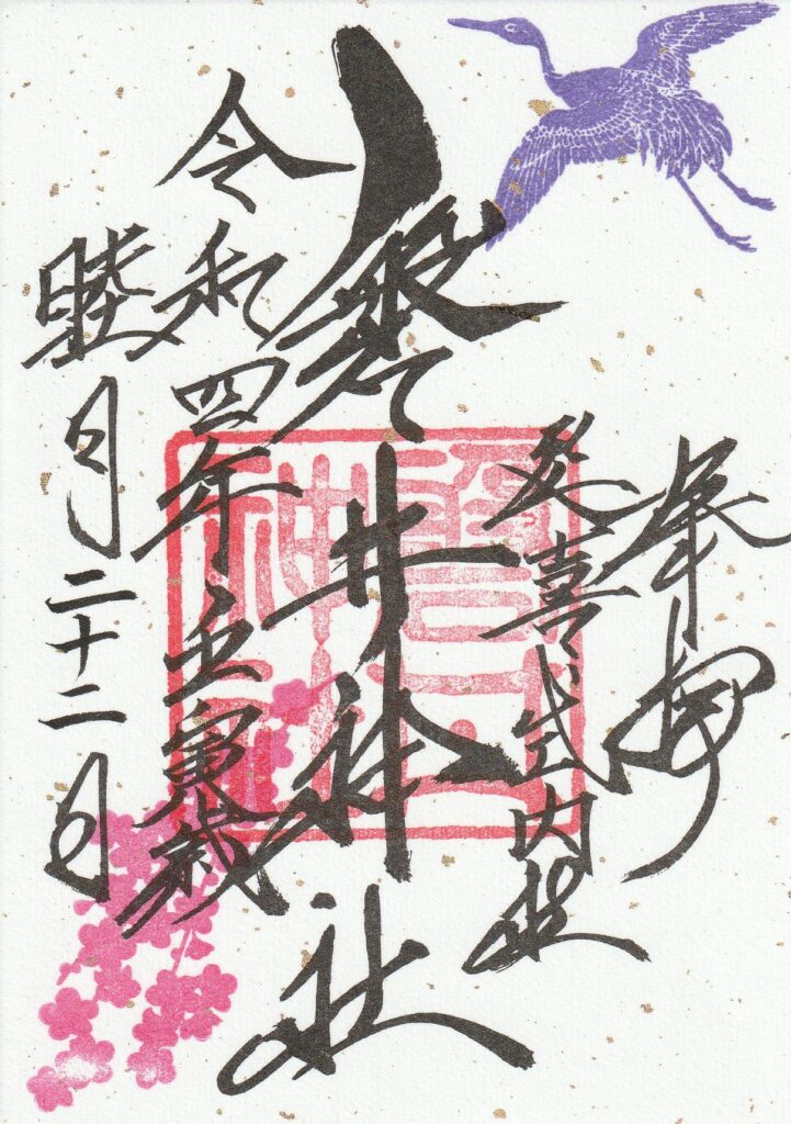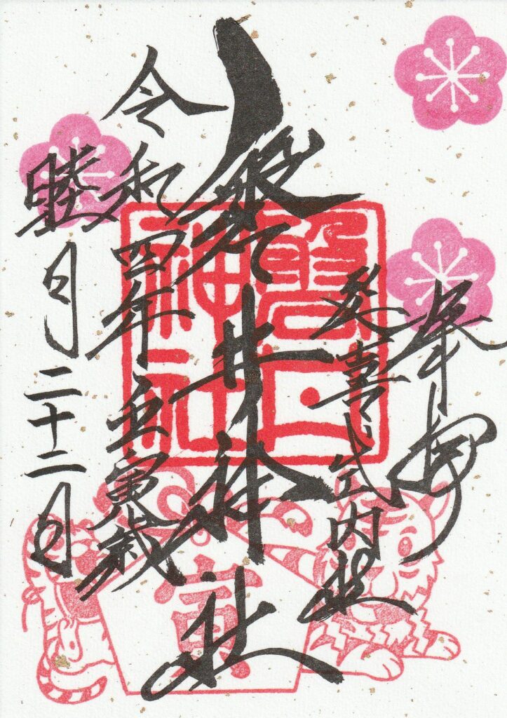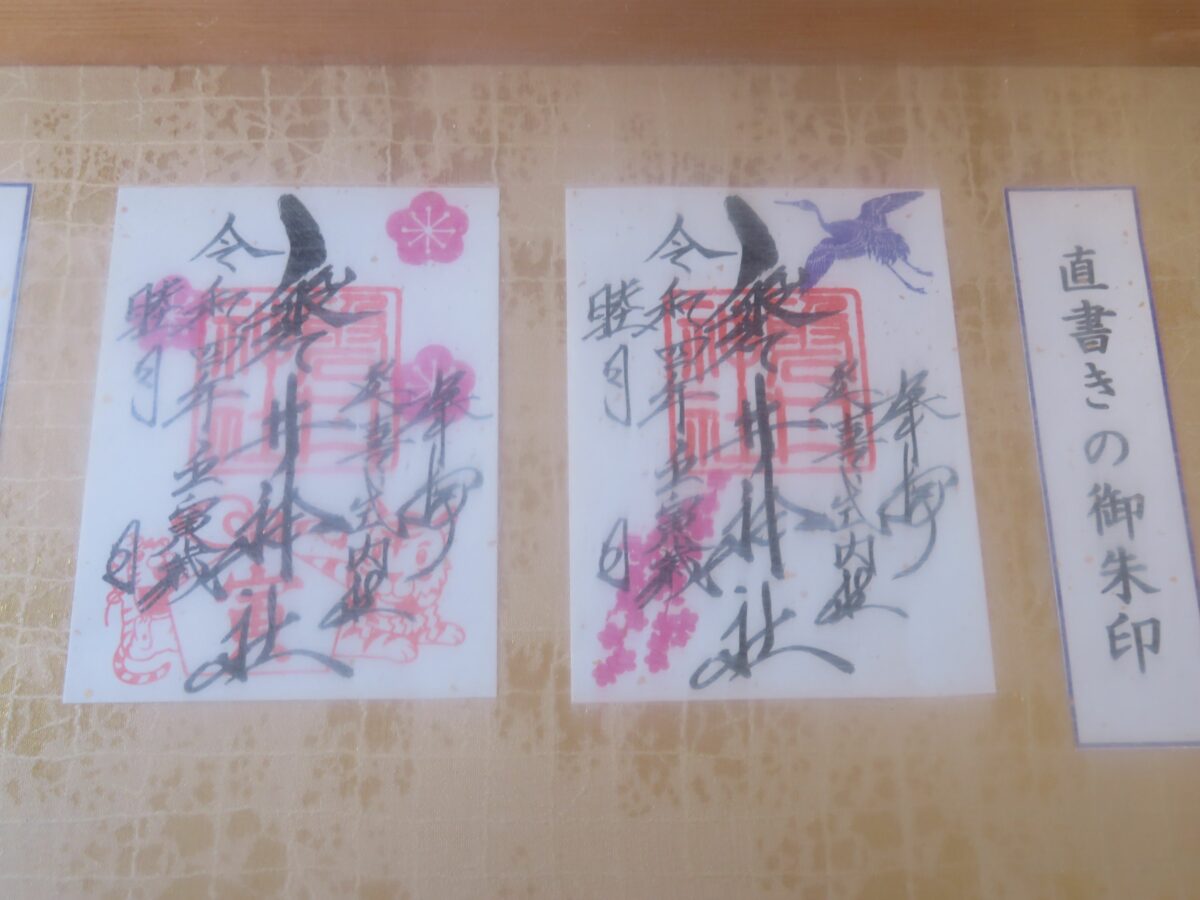 期日限定の御朱印を頂くことができなくても、各々の参拝日に準備される御朱印の種類は極めて豊富です。2022年の1月下旬には6種類の御朱印を揃えることができました。新しい年を迎えたばかりなので、2種類の直書きの御朱印には鶴や干支の寅が描かれています。