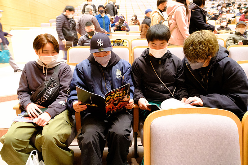 午前8時半、ホールが開場します。前売り券は完売、当日券と合わせて1200人の観客を迎えます。席は全て自由なので、最前列から順に埋まっていきます。