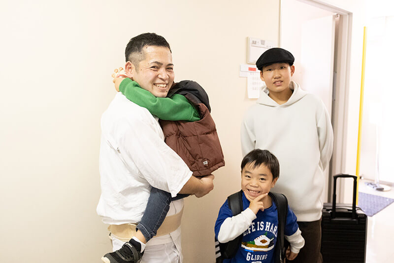 猿を演じた子どもたちに、上演後に話を聞くと「楽しかった!」と笑顔。父親やきょうだいなどが神楽をやっていて、自分もやりたいと思ったそうです。また、舞台を降りて衣裳を脱いだ汗だくの父親にしがみつく子どもの様子を見て、連綿と続く浜田市の神楽愛を垣間見ました。