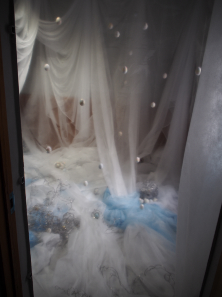 “作品の中が安全”というコンセプトだったが、創作している内に、この部屋の中にいる卵自体が安全とは限らない。もしかしたら悪い卵もいるかも知れない。そうしたら、部屋を立入禁止にした方が、部屋の外から見る人にとっても安全。結果的に、部屋の外から見るというスタイルで合っていた。