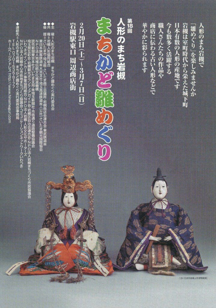 「岩槻流しびな」の開催日を含み「桃の節句」の前後には、岩槻駅東口周辺商店街では「まちかど雛めぐり」も開催されます。2021年の期間は2月20日~3月7日です。期間中には市内の人形店では趣向を凝らした展示を行っています。