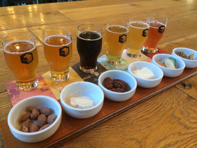 6種類のクラフトビールとおつまみの「ペアリングセット」(2300円)。