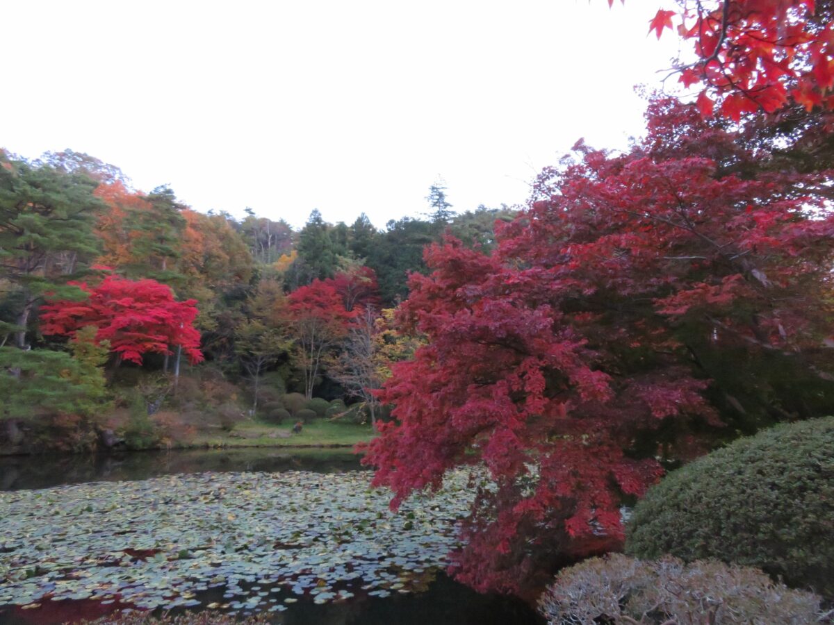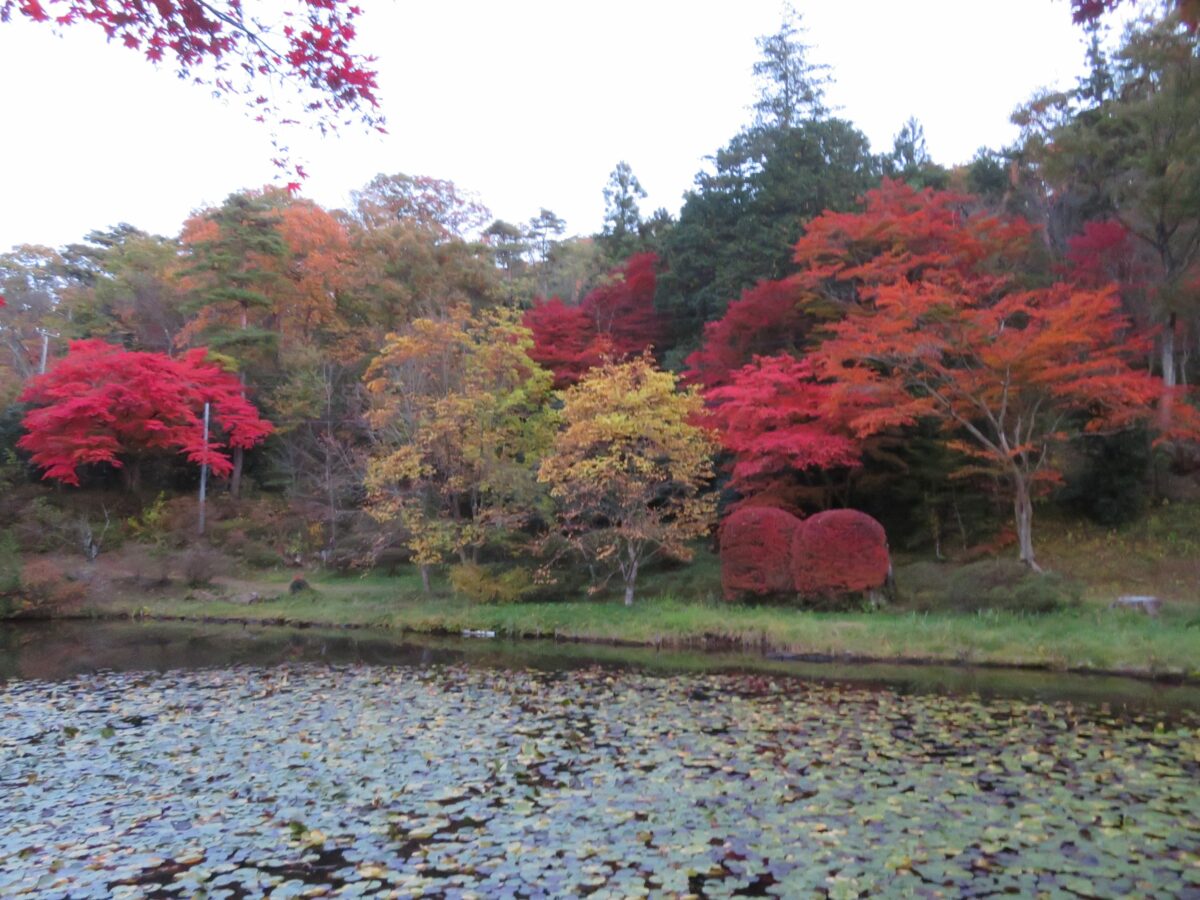 阿武隈川の恵みに満ちる福島県本宮市の花と歴史の郷「蛇の鼻」は、一年を通して季節の彩りが満ち溢れます。例年10月下旬から11月中旬には、公園中央の擂鉢池の西岸の遊歩道は紅葉コースとなり、「蛇の鼻もみじ祭り」が開催されています。同じ時期に菊花展も行われ趣きの異なる秋を感じることができます。