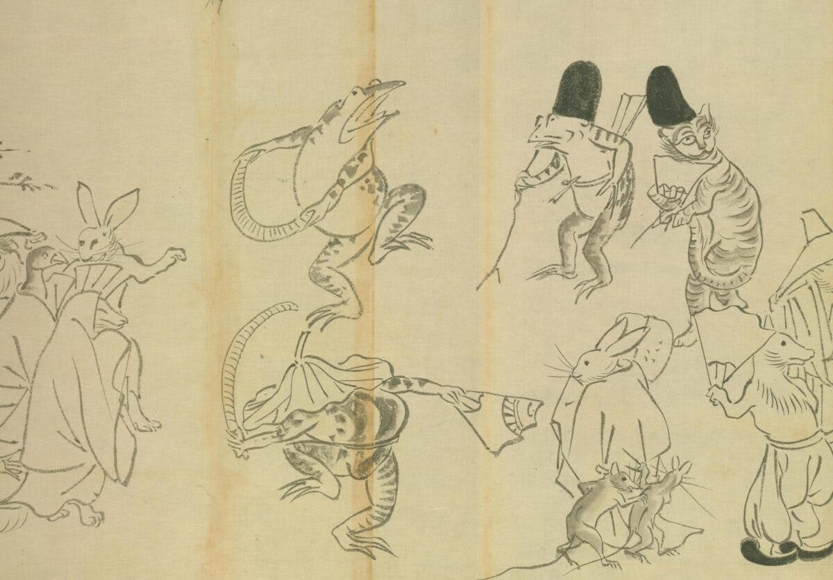 「鳥獣戯画」よりカエルの田楽(『河鍋暁斎粉本』/国立国会図書館所蔵)