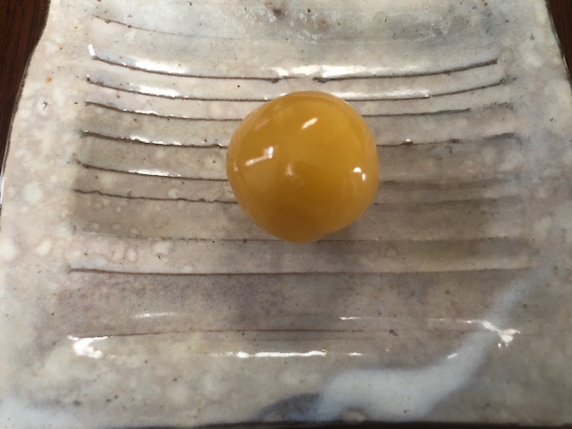 まんなかの黄色い玉はみかん。こちらは甘酸っぱく、女子受けしそうな味わい。お月様のような色合いも素敵です。